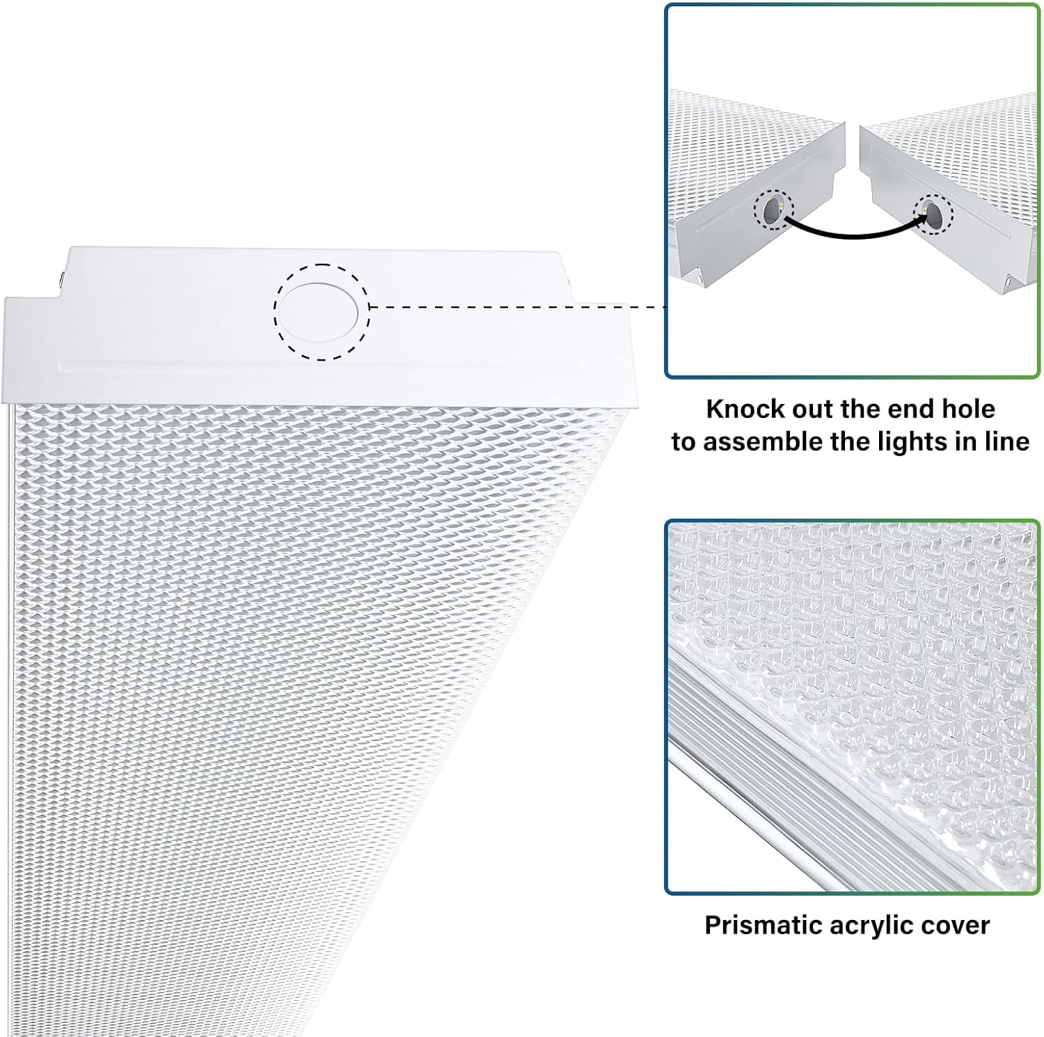 - LINKABLE - Knock outs on ends and assemble the lights in line together (up to 20). Easy set up with these 4ft led wrap light. Just attach it your wall or ceiling, connect the wiring as instructed with included mounting hardware. NO BALLAST TO EVER REPLACE!