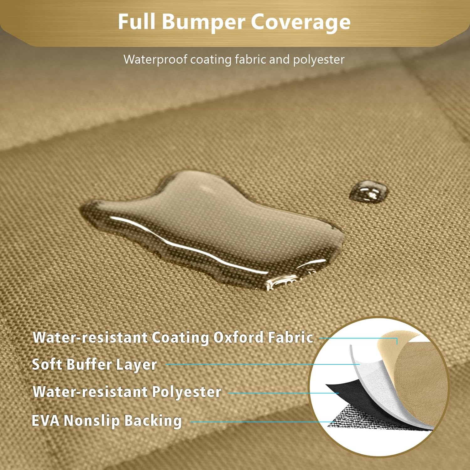 F-color SUV Cargo Liner for Dogs - Waterproof Pet Cargo Liner with Side Flaps, Comfort Dog Cargo Cover with Bumper Flap, Scrachproof Non-Slip Large Size Universal Fit SUVs Sedans Trunks Vans, Khaki