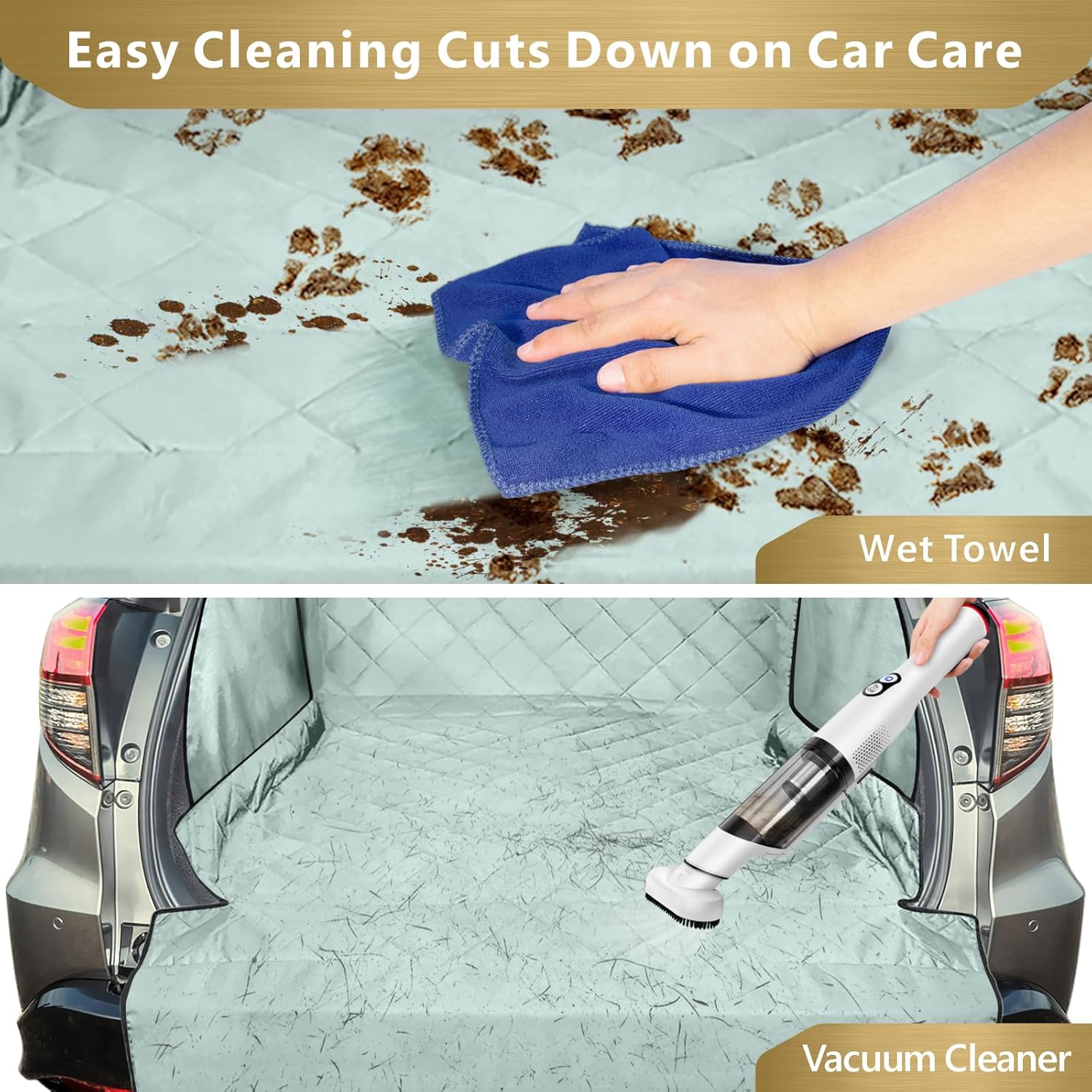 - Easy Clean-up - Made of 4-layers 600D oxford fabric; Our trunk cover for dog is Waterproof, stain-resistant and simple to clean; Wipe off dirt with a damp cloth or vacuum it