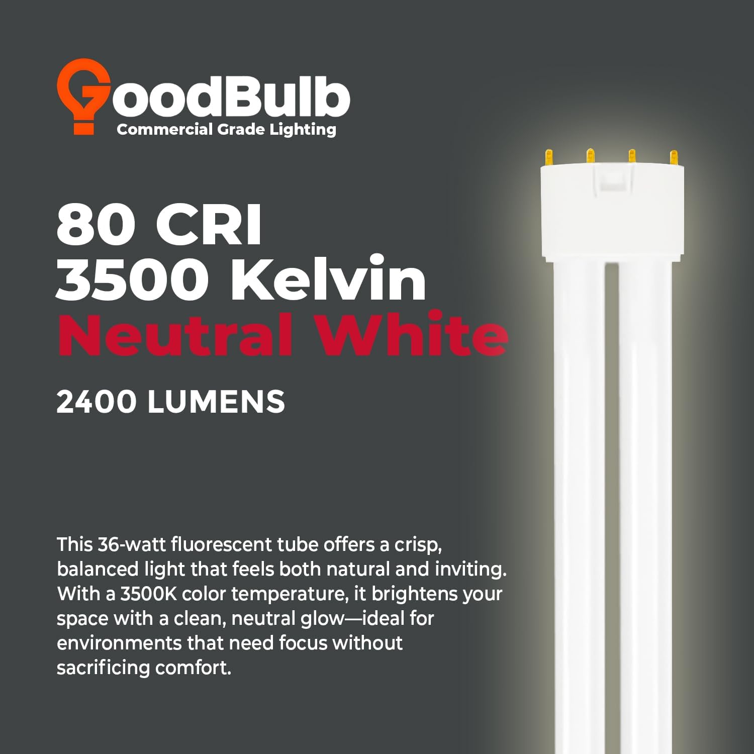 GoodBulb PLL36/835 36W 16.5" Twin Tube Compact Fluorescent Light Bulb 4-pin 2G11 Base 3500K Neutral White 2400 Lumen 36000 Hour Long Life Biax Pack of 10