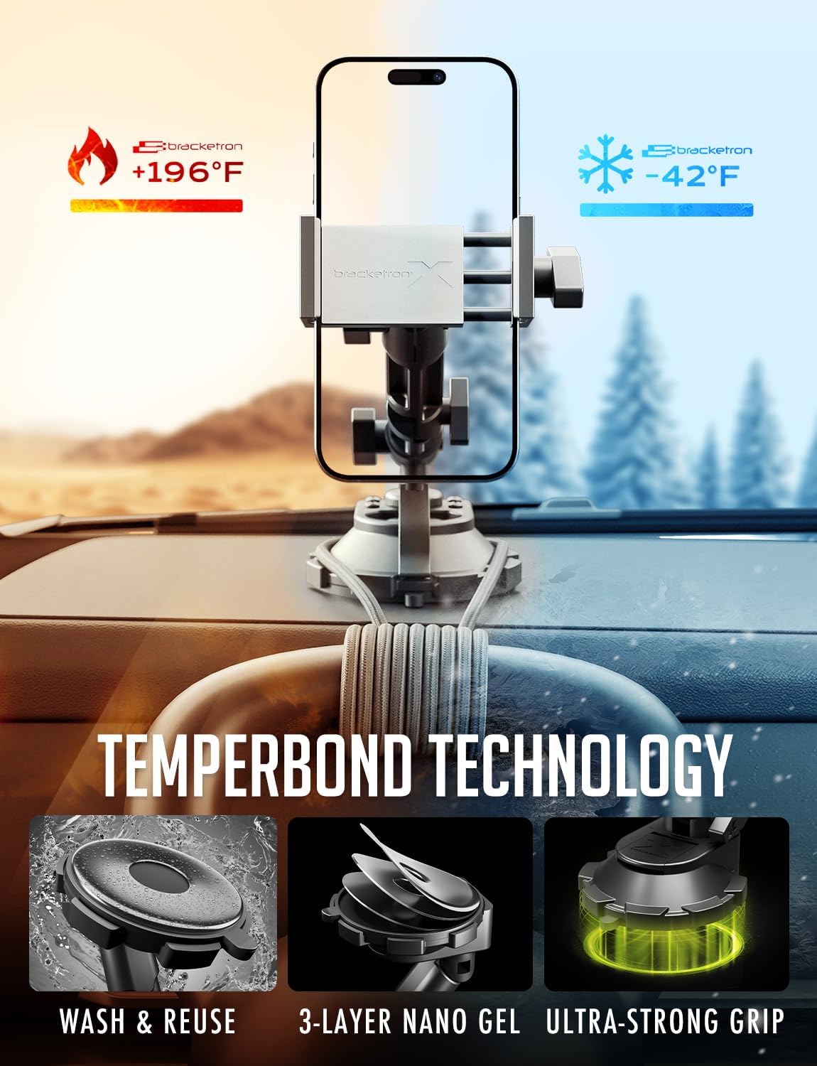 Bracketron HD Phone Dock PRO Dash and Window Metal Clamp Mount, Phone Holder for Car, Universal Phone Mount for Phones up to 3.5 Inches Wide