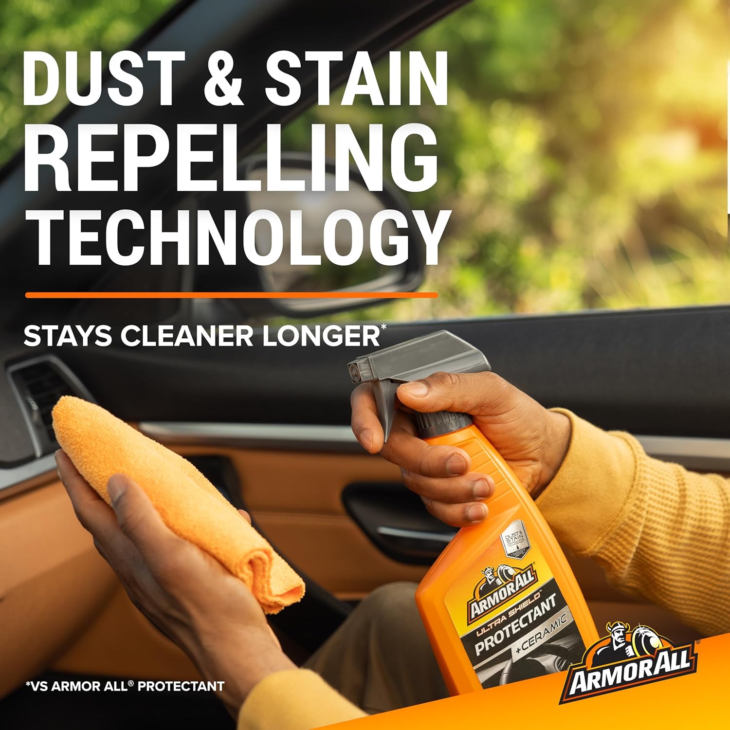 - Apply Armor All protectant car dust spray to microfiber towel or to surfaces