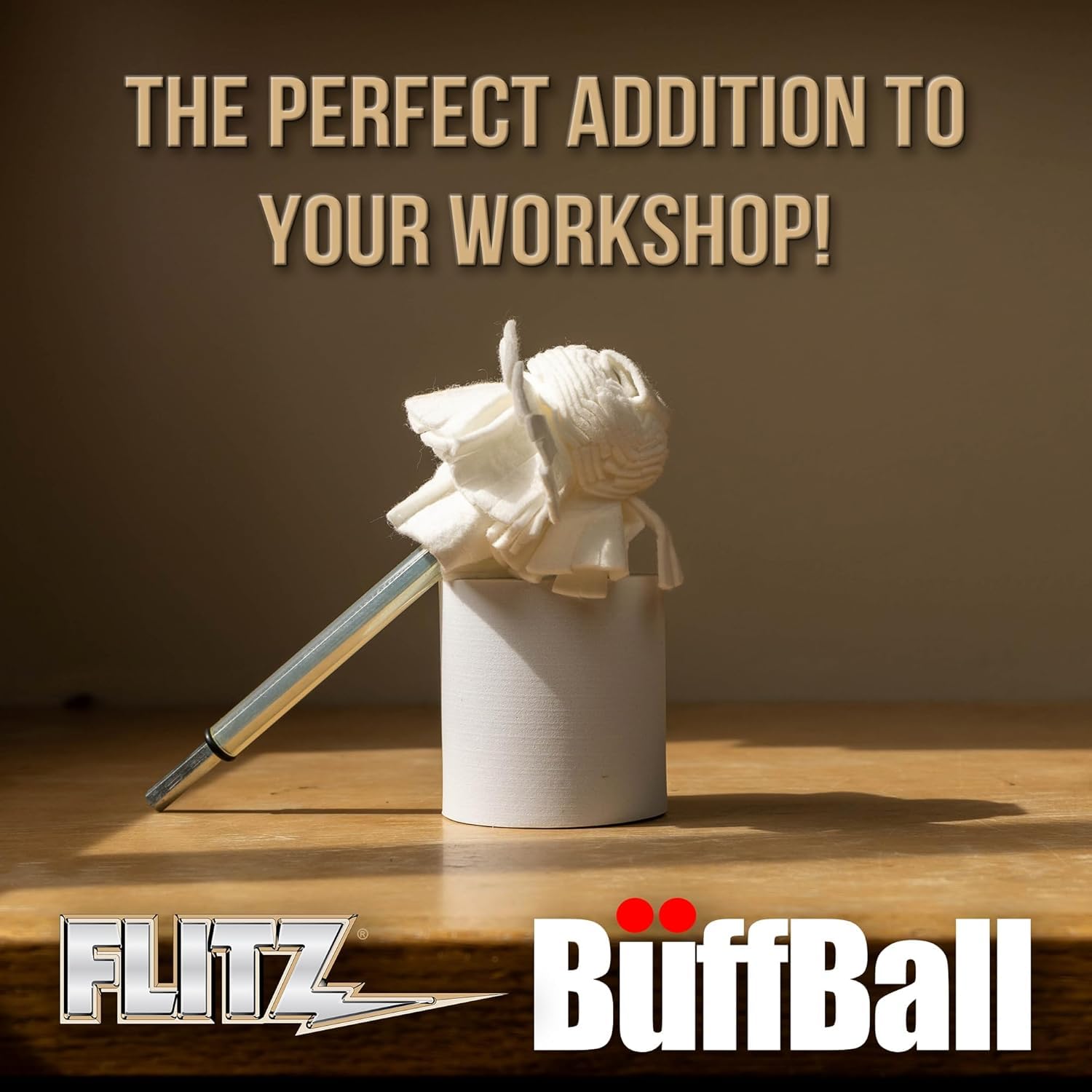 Flitz Buff Ball w/ 1.76oz Metal Polish Paste - 2in Drill Buffer Polisher Attachment for Any 3/8in Drill - Self-Cooling, Washable Polishing Ball to Buff, Shine, & Protect All Metals, Plastics (1 Pack)
