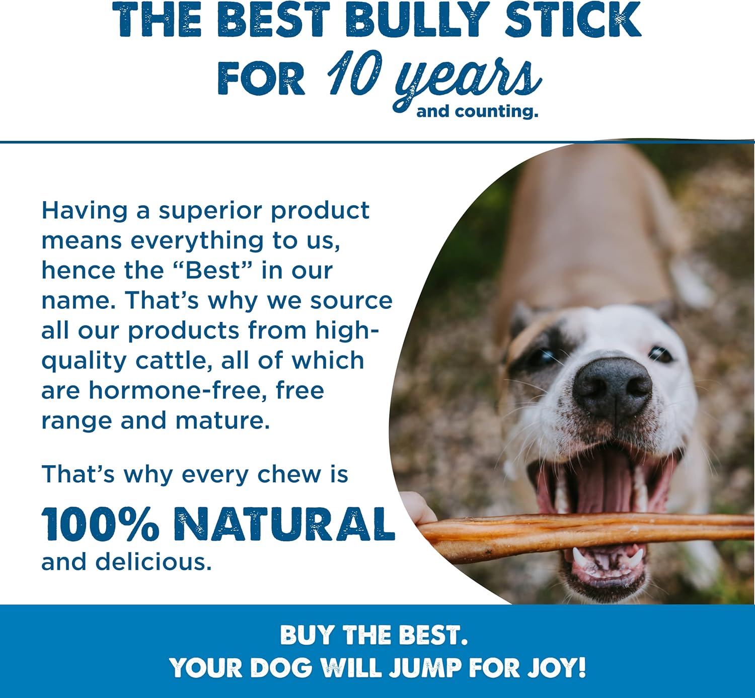 Best Bully Sticks 6 Inch Bully Sticks for Dogs - 15 Count (Pack of 1) - Natural, Easily Digestible, 100% Grass-Fed Beef, Grain and Rawhide Free