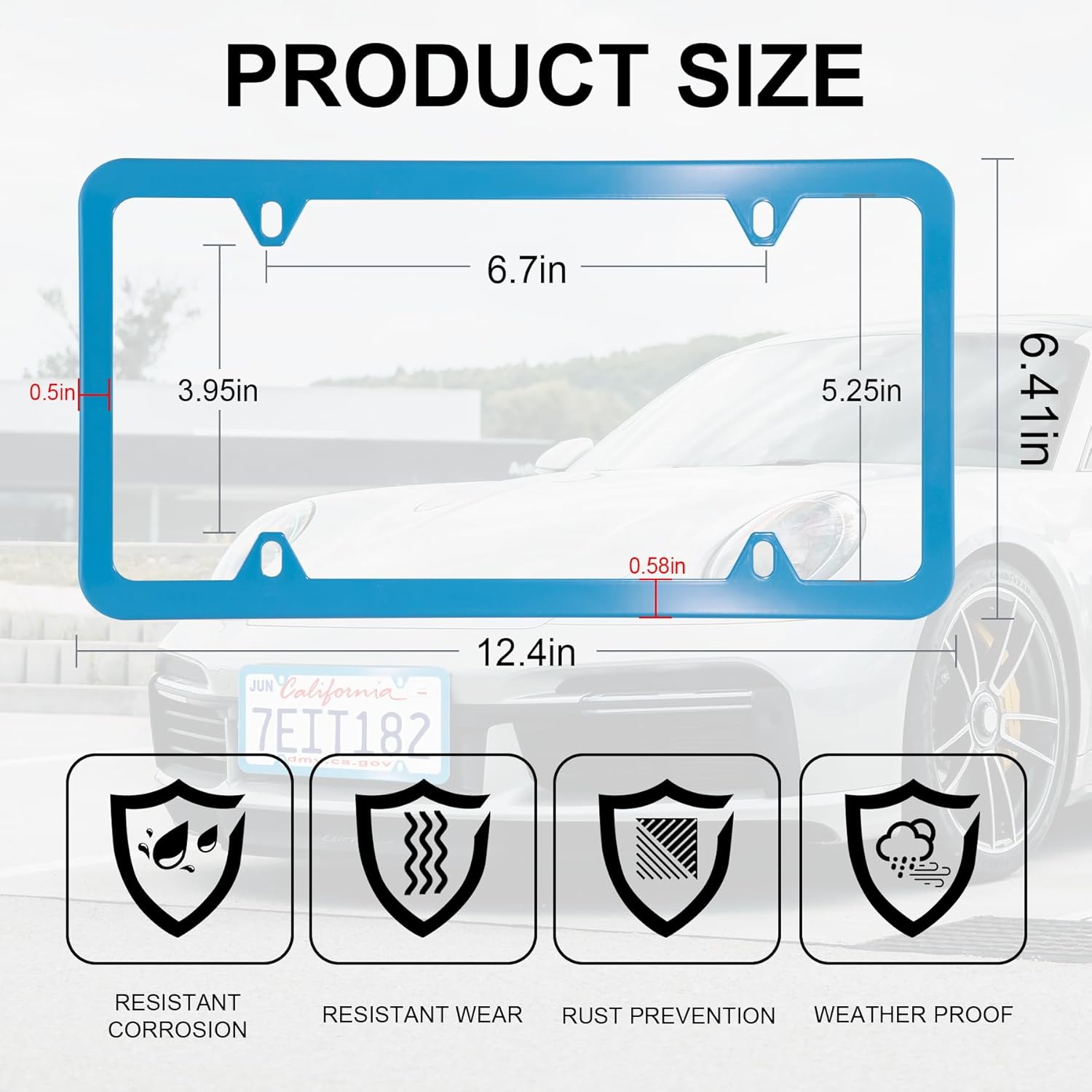 LivTee 4 Holes Stainless Steel License Plate Frames, 2 PCS Car Licence Plate Covers, Automotive Exterior Accessories Slim Design with Bolts Washer Caps for US Vehicles, Blue