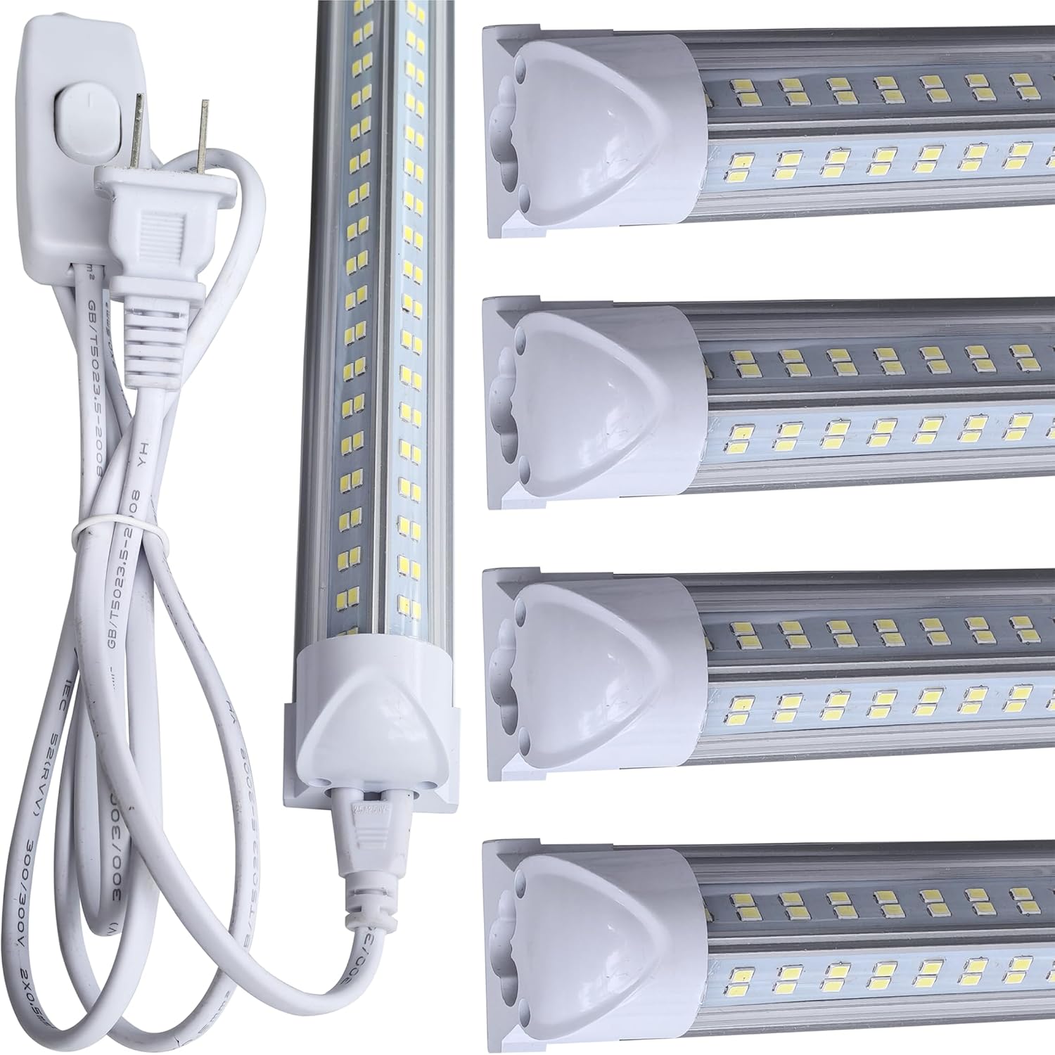 - Super Bright - V-shape designed T8 shop light provide a wide 270 degree beam angle, 4 row LED chips also ensure enough light to illuminate every dark corner of your space.