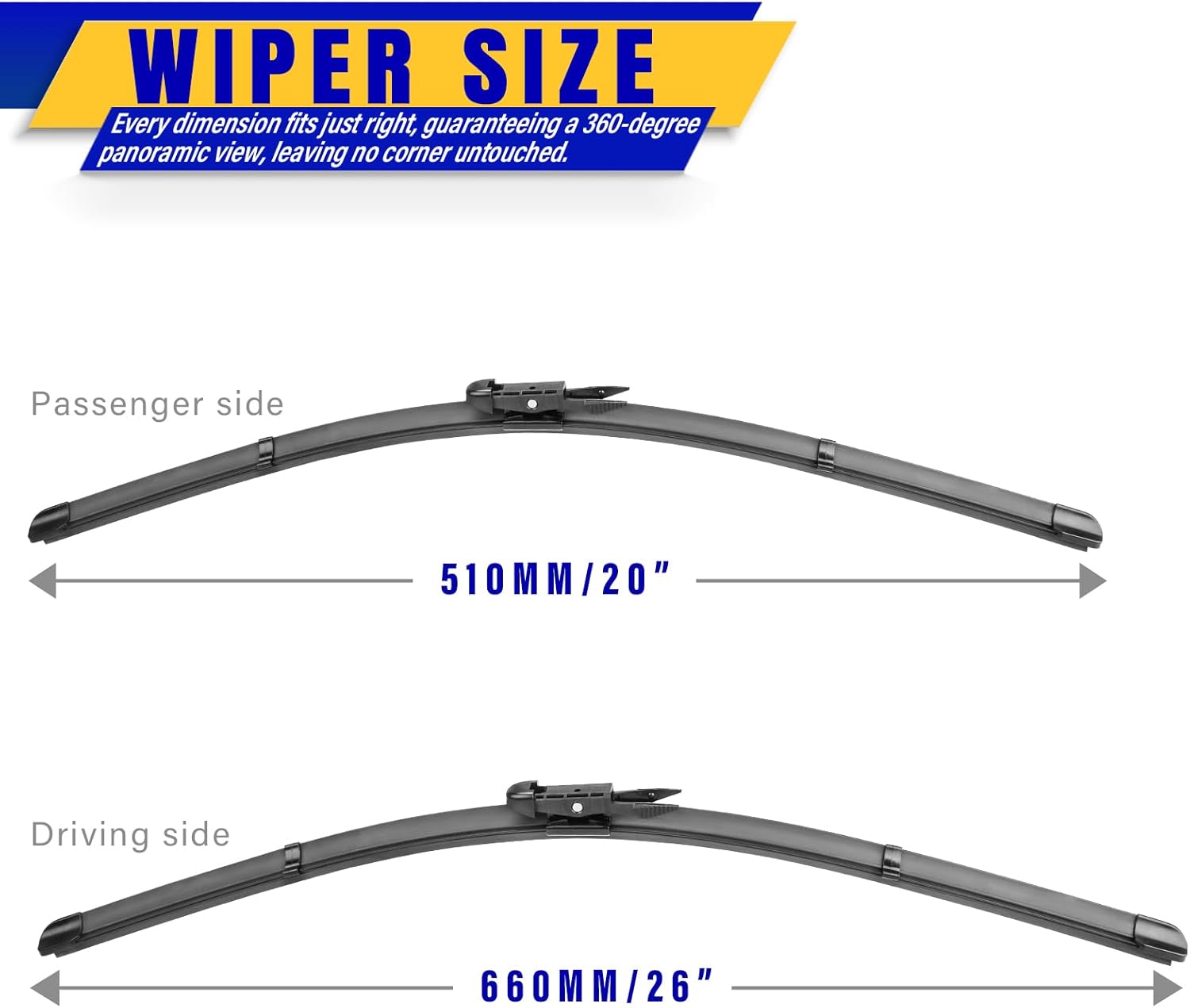 - ăWORRY-FREE SHOPPINGă 2Pcs wiper blades 26"+20" and Instruction Manual. One Year warranty! Refund or return anytime in one year, Long life, smooth engagement.