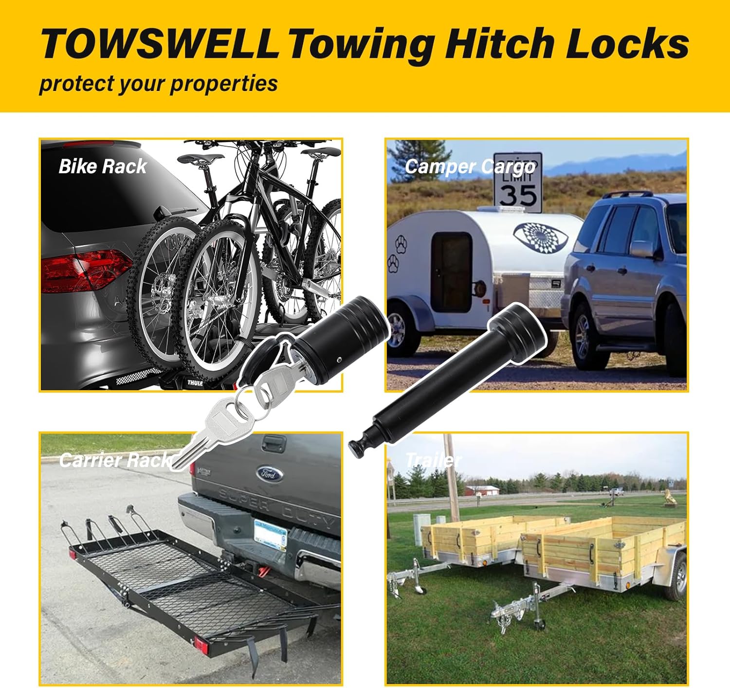 - Black coated finish, resists rust and corrosion no matter what the weather is, so you can always tow safe. With all-weather rubber key slot cap, keeps the internal keyhole away from moisture, dust and rust