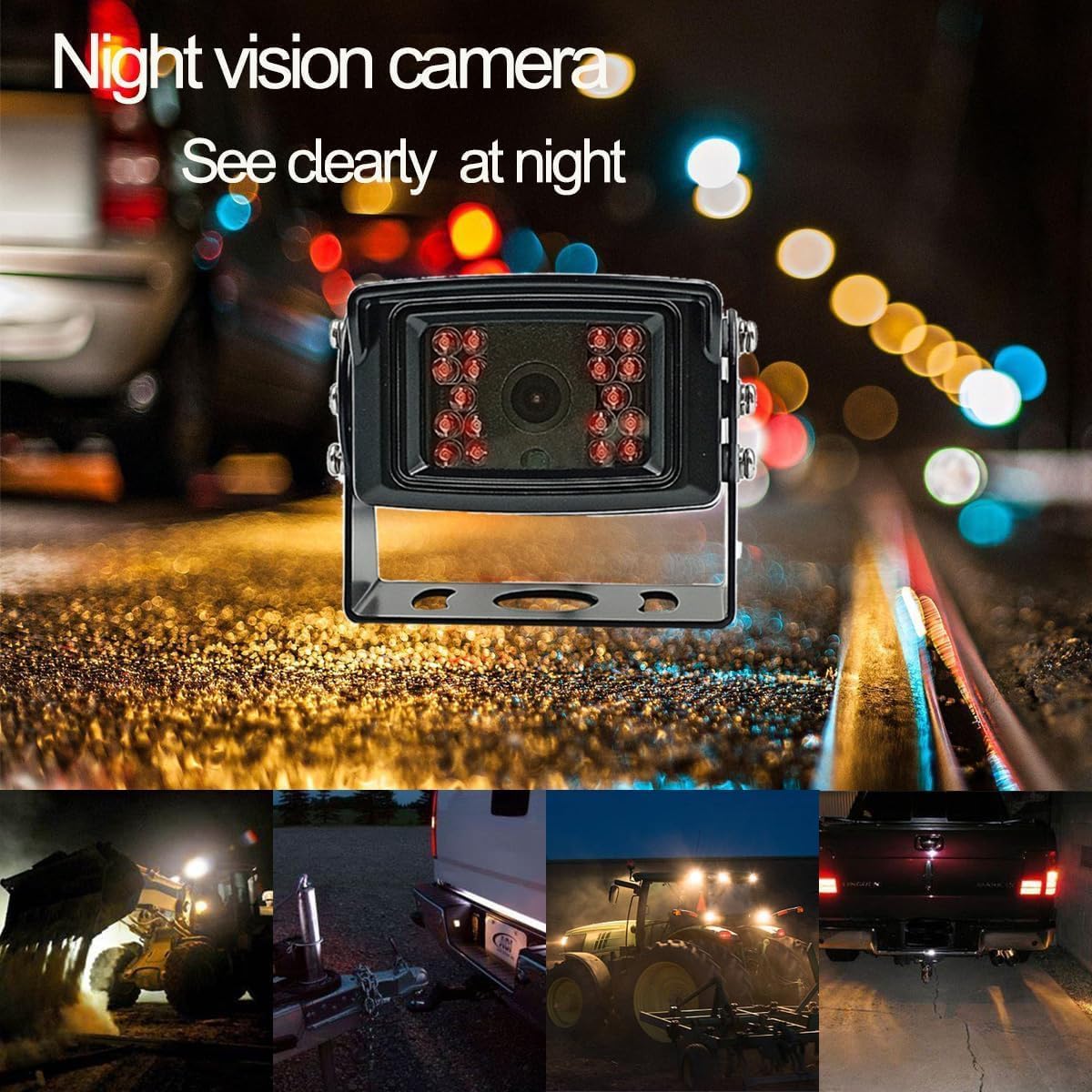 - Applications: With Wide Power Input Range (DC12-36V) ,this advanced wired camera system is perfect for large vehicles and heavy equipment, including: (1).Commercial Vehicles: Buses, box trucks, garbage trucks, refrigerator trucks, and more. (2).Construction & Farming Equipment: Bulldozers, excavators, farm tractors, combines, and crop sprayers, skid steers, etc. (3).Specialty Vehicles: Snow plows, forklifts, motor homes, and street sweepers, etc.