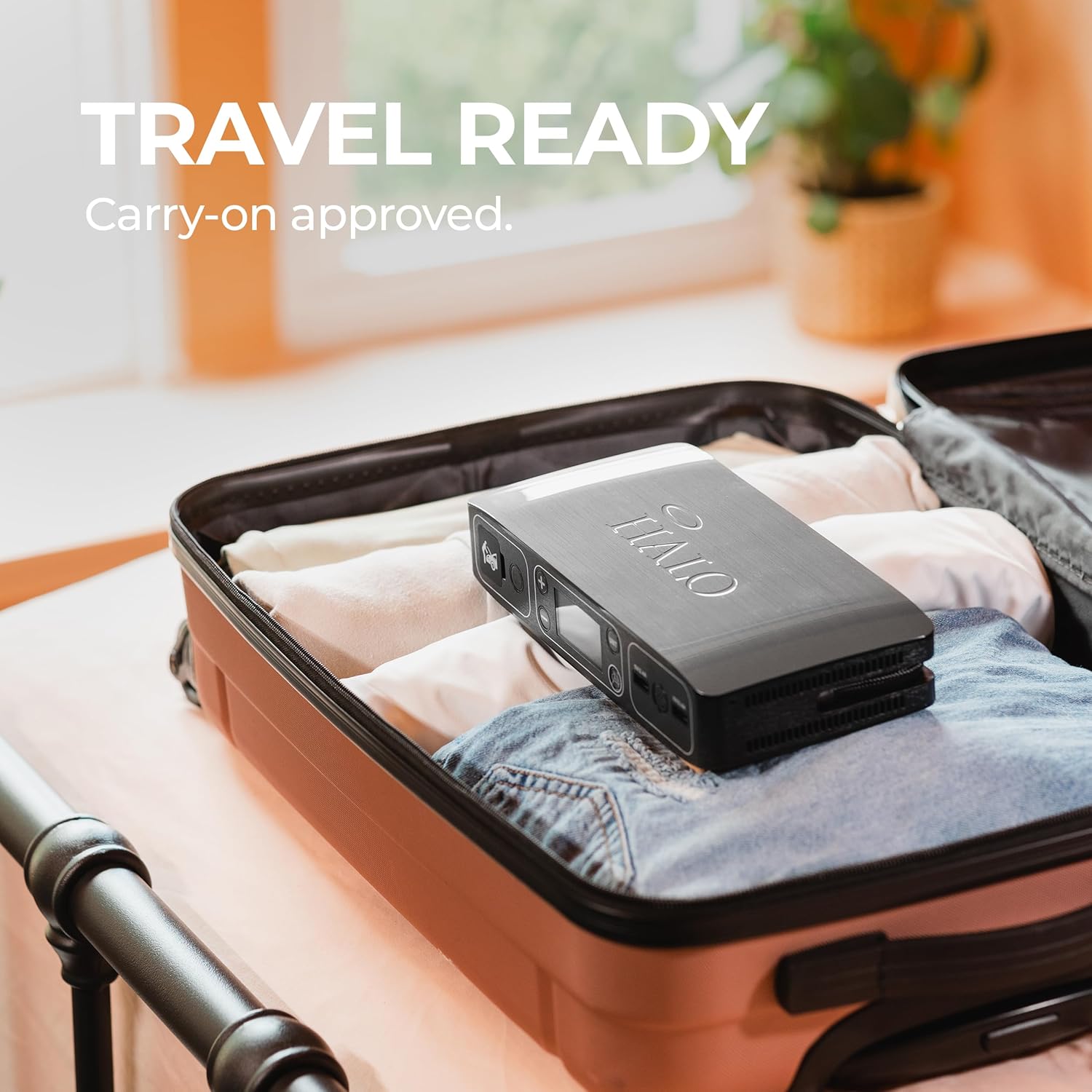- PORTABLE EMERGENCY CAR JUMP STARTER: The HALO Bolt Air USB Power Bank can jump start a full-sized car or SUV. Everything you need to get back on the road in minutes is included. Model Number: HALO Bolt Air