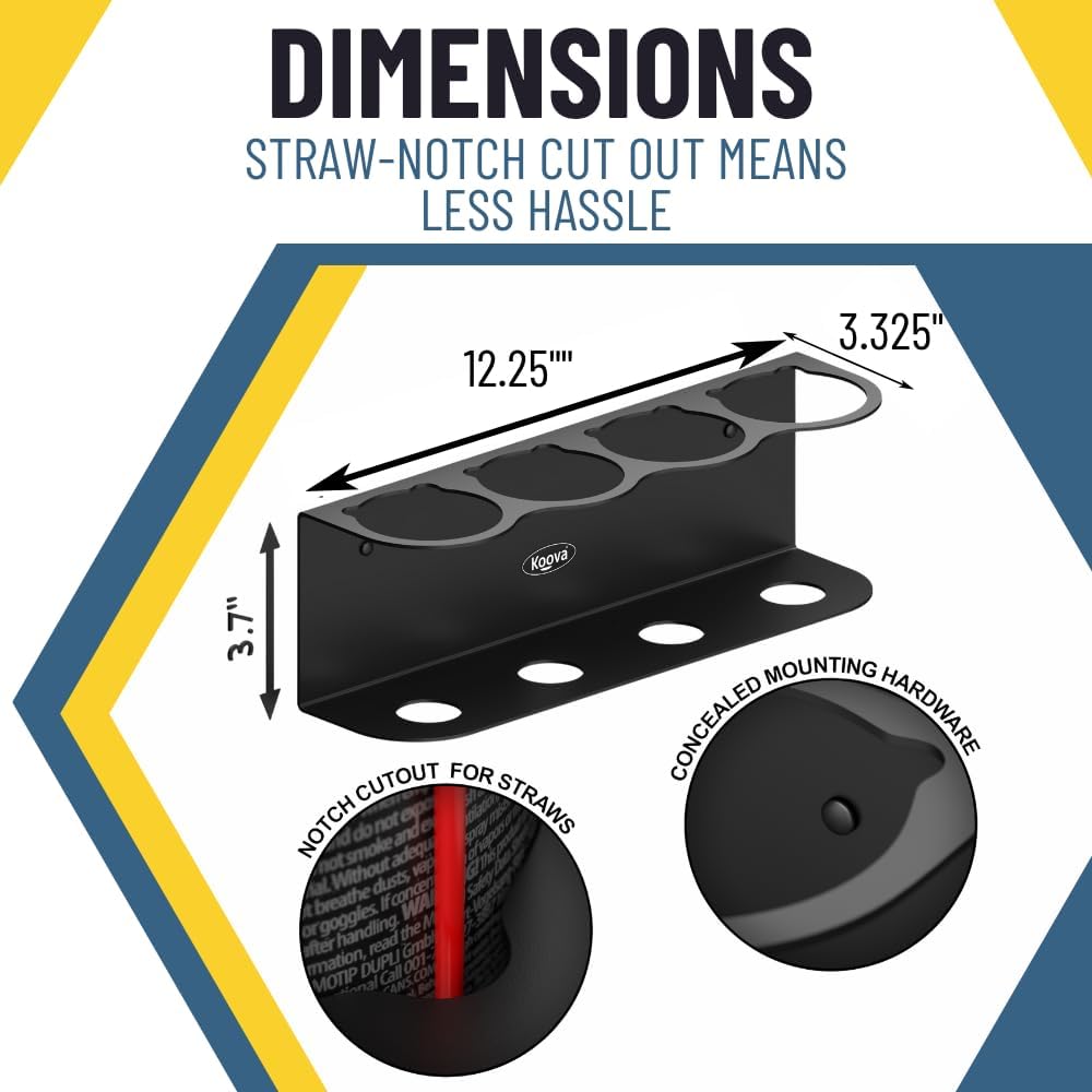 - STRAW NOTCH CUT-OUT: When space is at a premium the sleek design keeps everything efficiently organized, it even has built-in notches for cans that come with attached precision straws. Koova provides a spot for your tools, saving valuable space and time!