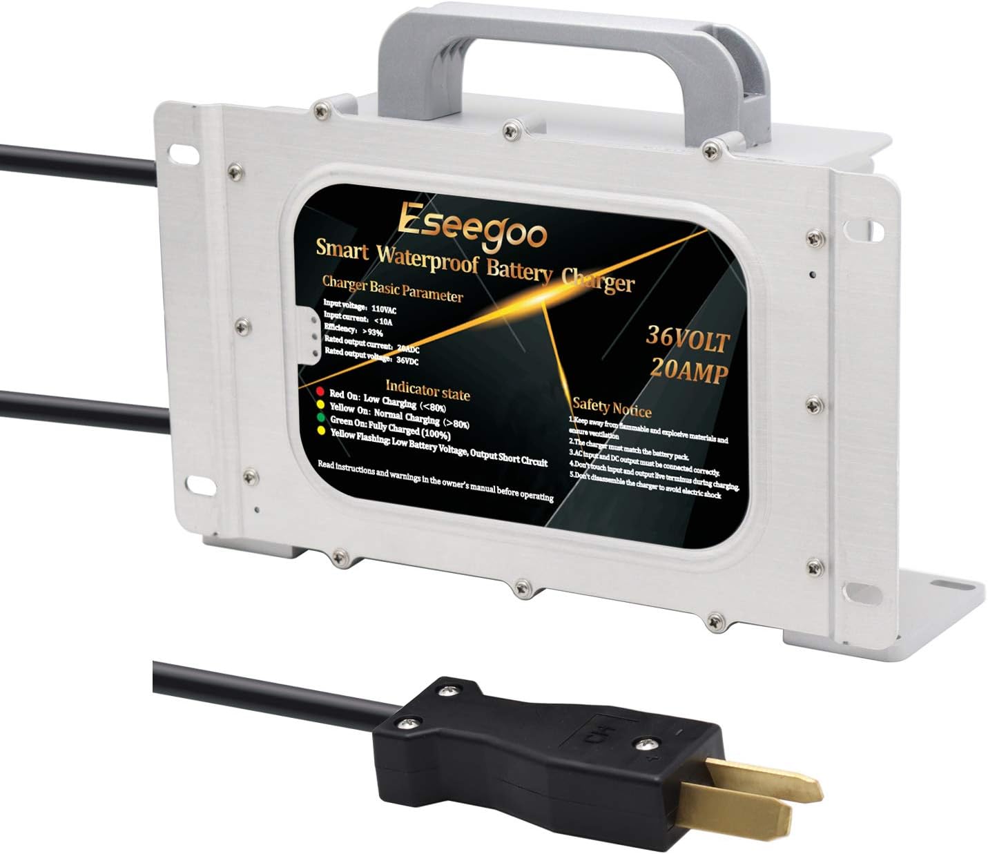 - *LIGHTWEIGHT & CONVENIENT CARRY HANDLE - The charger weighs in at only 9 lbs and is more than 50% lighter than most OEM golf cart battery chargers. It is constructed with a durable die-cast aluminum alloy casing providing exceptional durability.