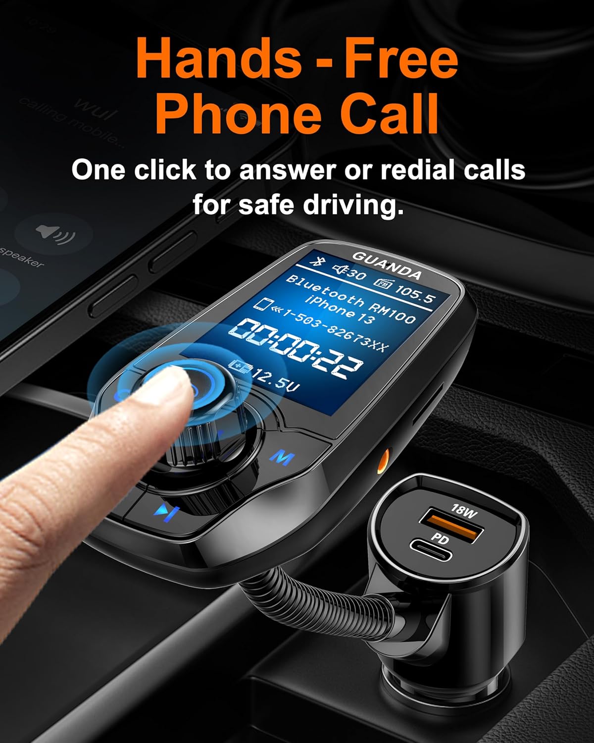 - INTELLIGENT CAR CHARGER ADAPTER, SAFE AND FAST CHARGE: FM transmitter for car comes with 2 USB ports PD 20W Fast Charging), you can charge two devices simultaneously. Built-in over-current protection, over-voltage protection, intelligent temperature control, short circuit protection, it will effectively ensure safe charging.