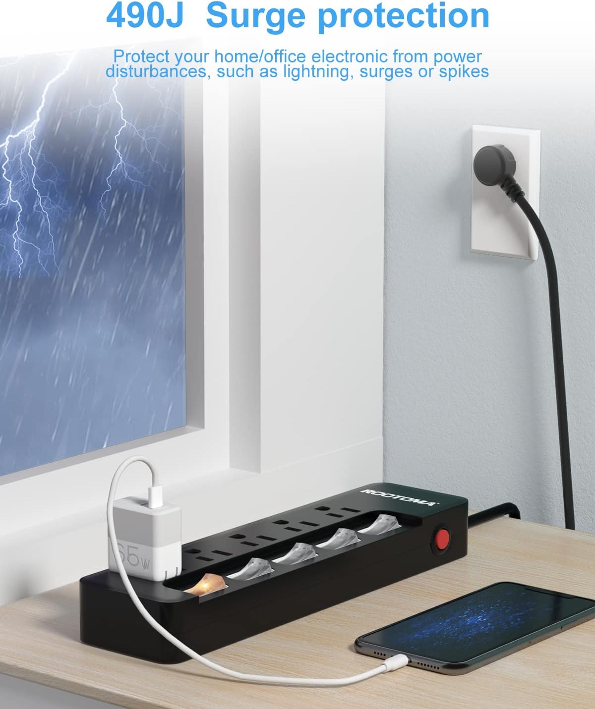 - 【All-round Protection】Surge protection to protects your electronics from damage due to surges, spikes. 15 Amp circuit breaker is equipped to react to overloads, providing the maximum protection. High-quality PC fireproof material, the Advanced One-piece Copper Conductor and 14AWG black extension cord with a 3-prong grounded plug bring more comprehensive safty protection.