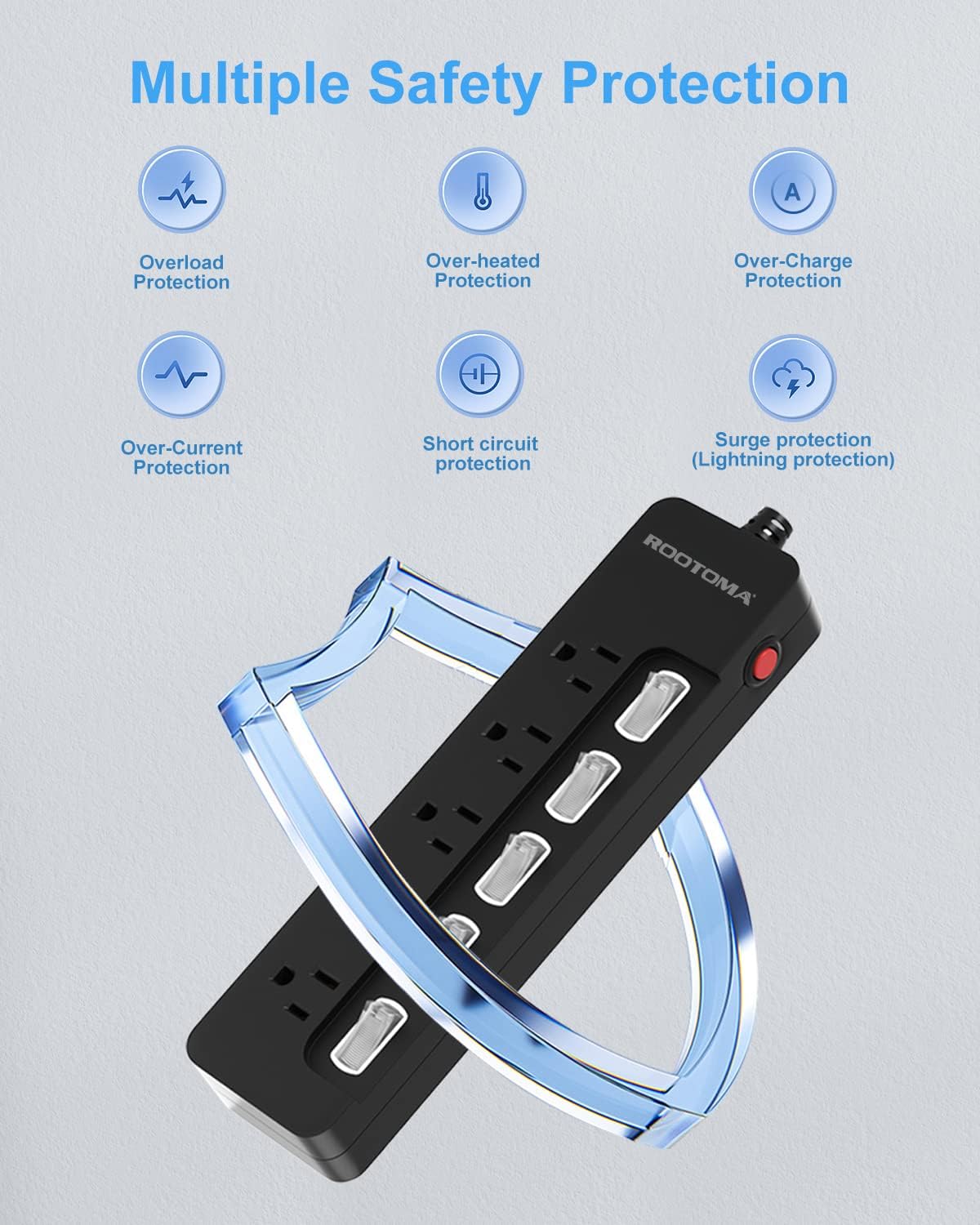 - 【Multi Safety Protection】This surge protector power strip has overload protection, short-circuit protection, over current protection, over-voltage protection and overheating protection. Suitable for office, university dormitory, home, kitchen.