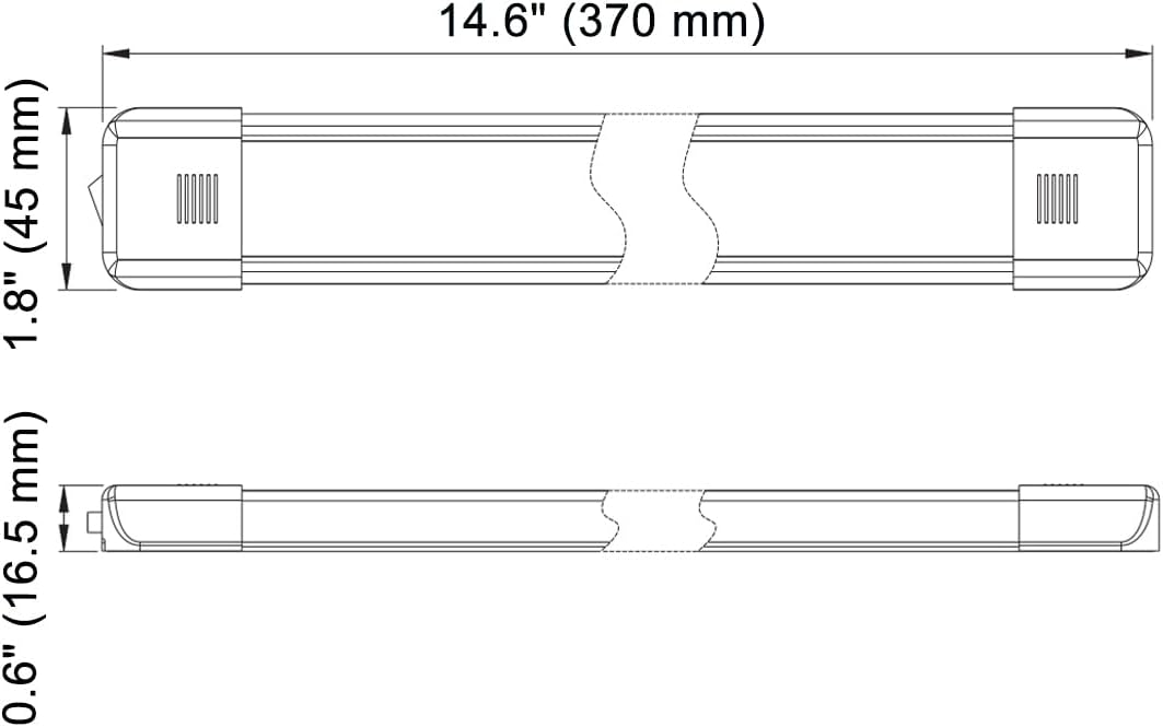 LED Interior Utility Light Fixture 14.6" x 2.6", High Lumen-Output Low Current Draw Energy Efficient, Frosted Lens 6000K Cool-White Even Diffused Beam, On/Off Rocker Switch 12V-24V DC, 1-Pack