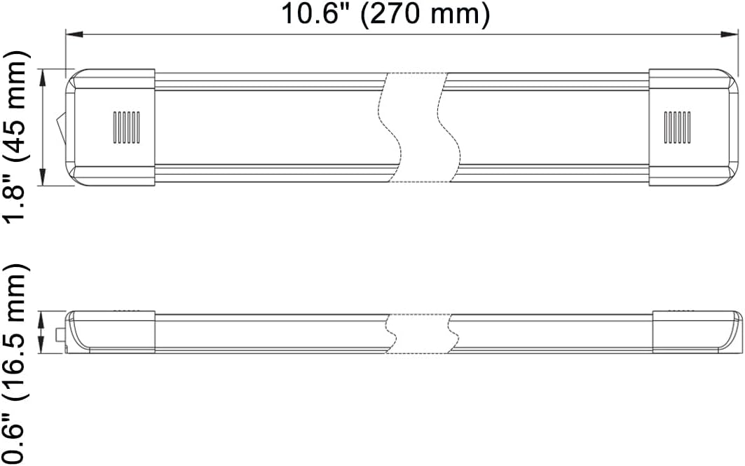 LED Interior Utility Light Fixture 10.6" x 2.6", High Lumen-Output Low Current Draw Energy Efficient, Frosted Lens 6000K Cool-White Even Diffused Beam, On/Off Rocker Switch 12V-24V DC, 1-Pack