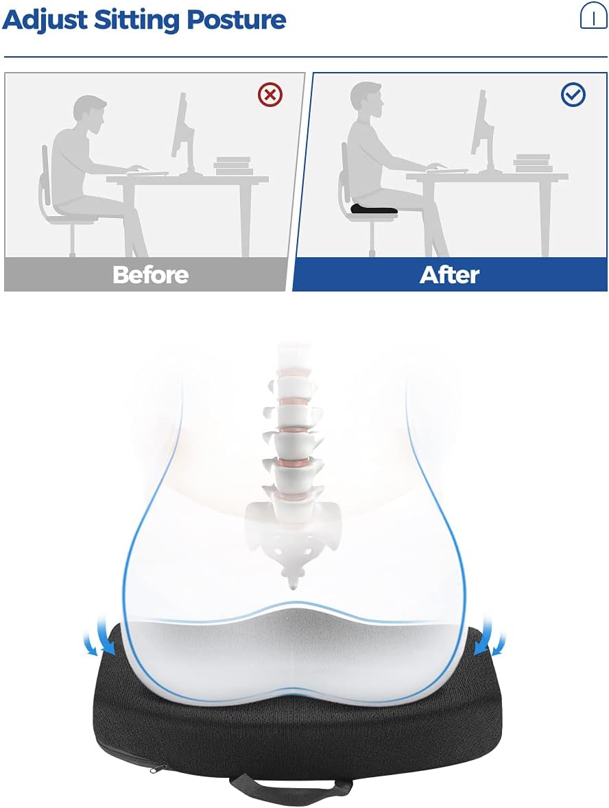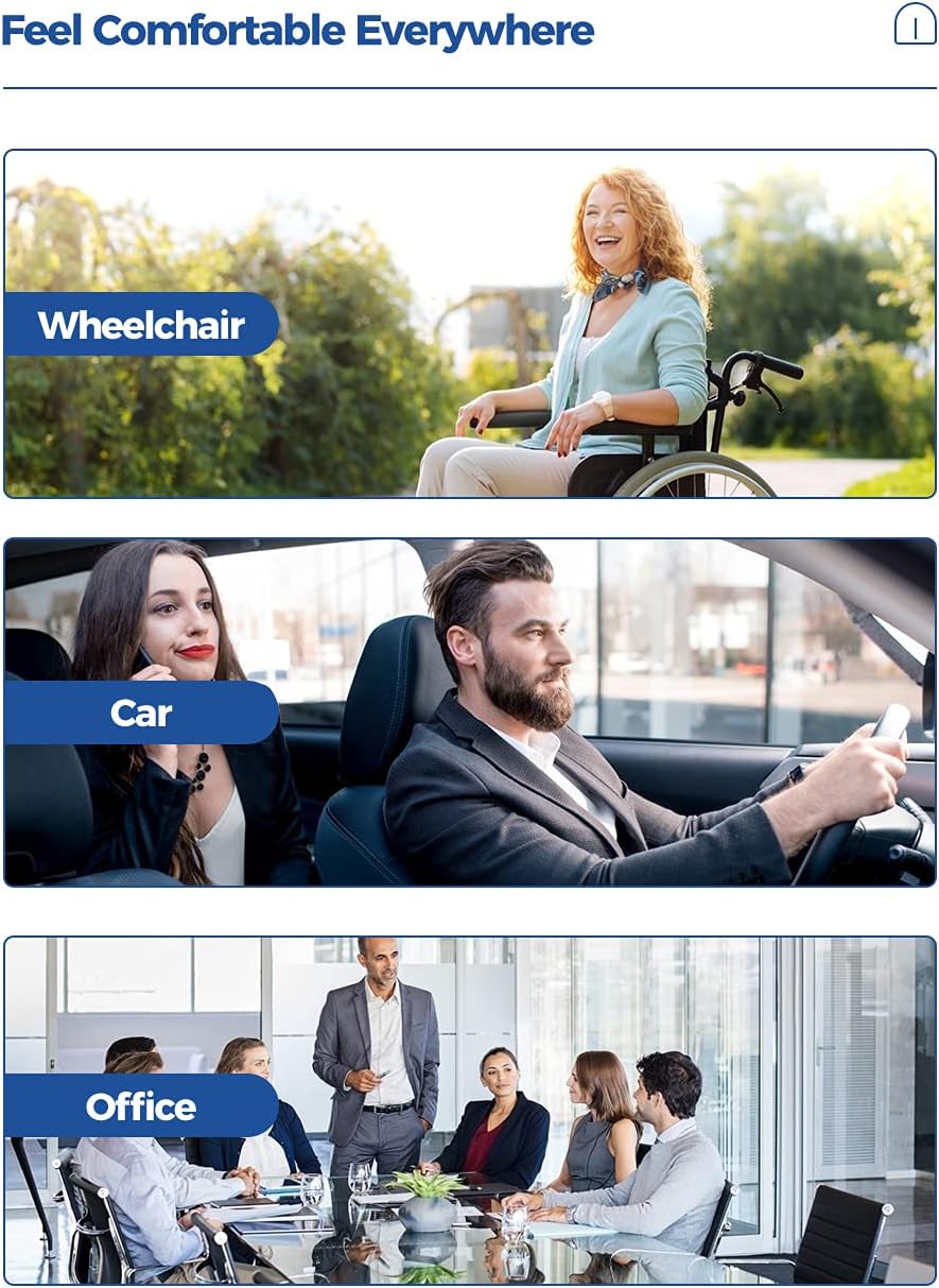 - Multifunction:Whether as a desk chair cushion, for home office computer chair cushion, seat cushion for office chair or wheelchair seat cushion, using this memory foam chair cushion for increasing comfort. Use the soft cushion as a stadium seat cushion or make your trip more pleasant by using it as a car seat pillow, seat cushion for driving by train or an airplane seat cushion.