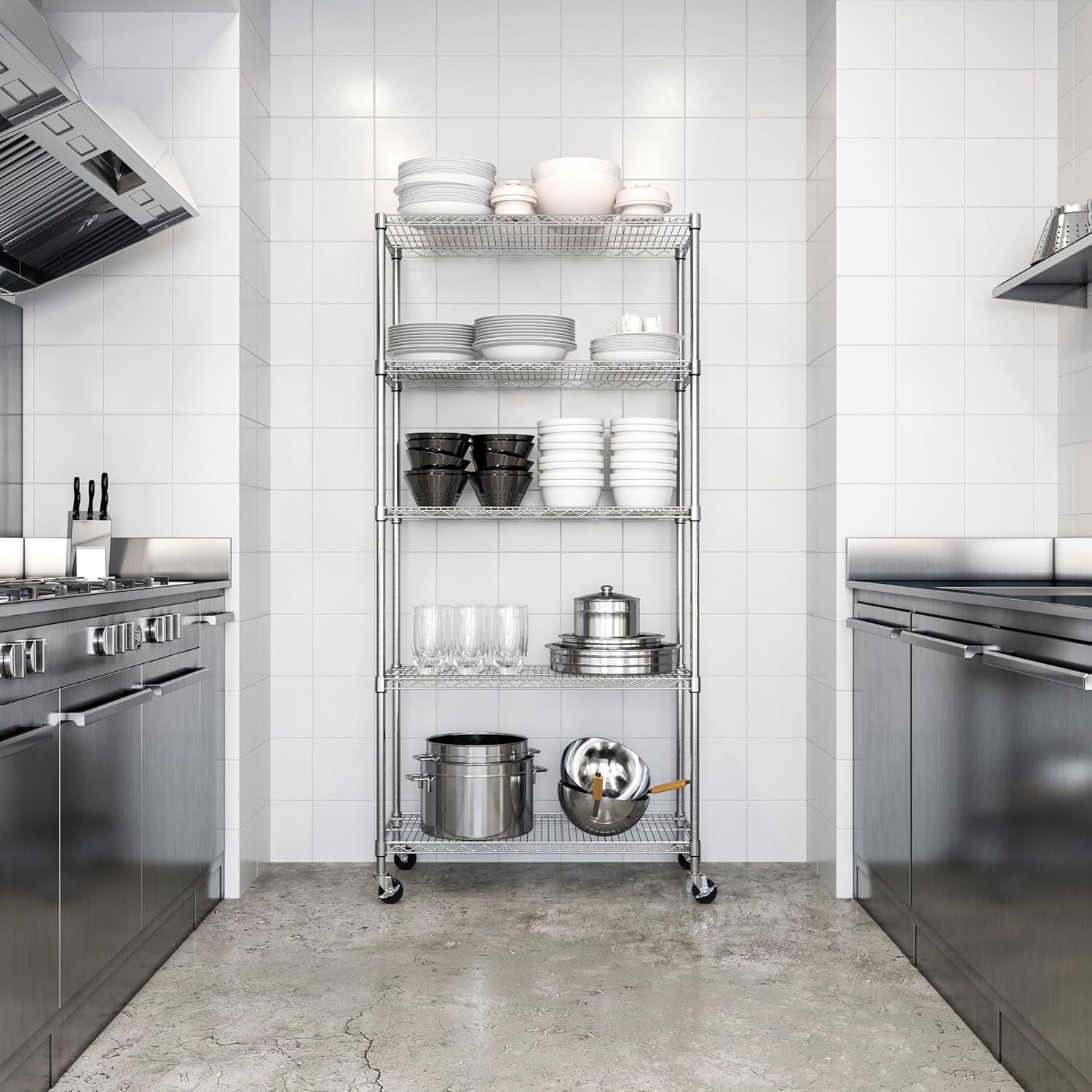 Seville Classics UltraDurable Heavy Duty NSF Solid Steel Wire Rack Storage Unit, Organizer for Garage, Warehouse, Office, Restaurant, Classroom, Kitchen, Steel, 5-Tier Shelving, 36" W x 18" D