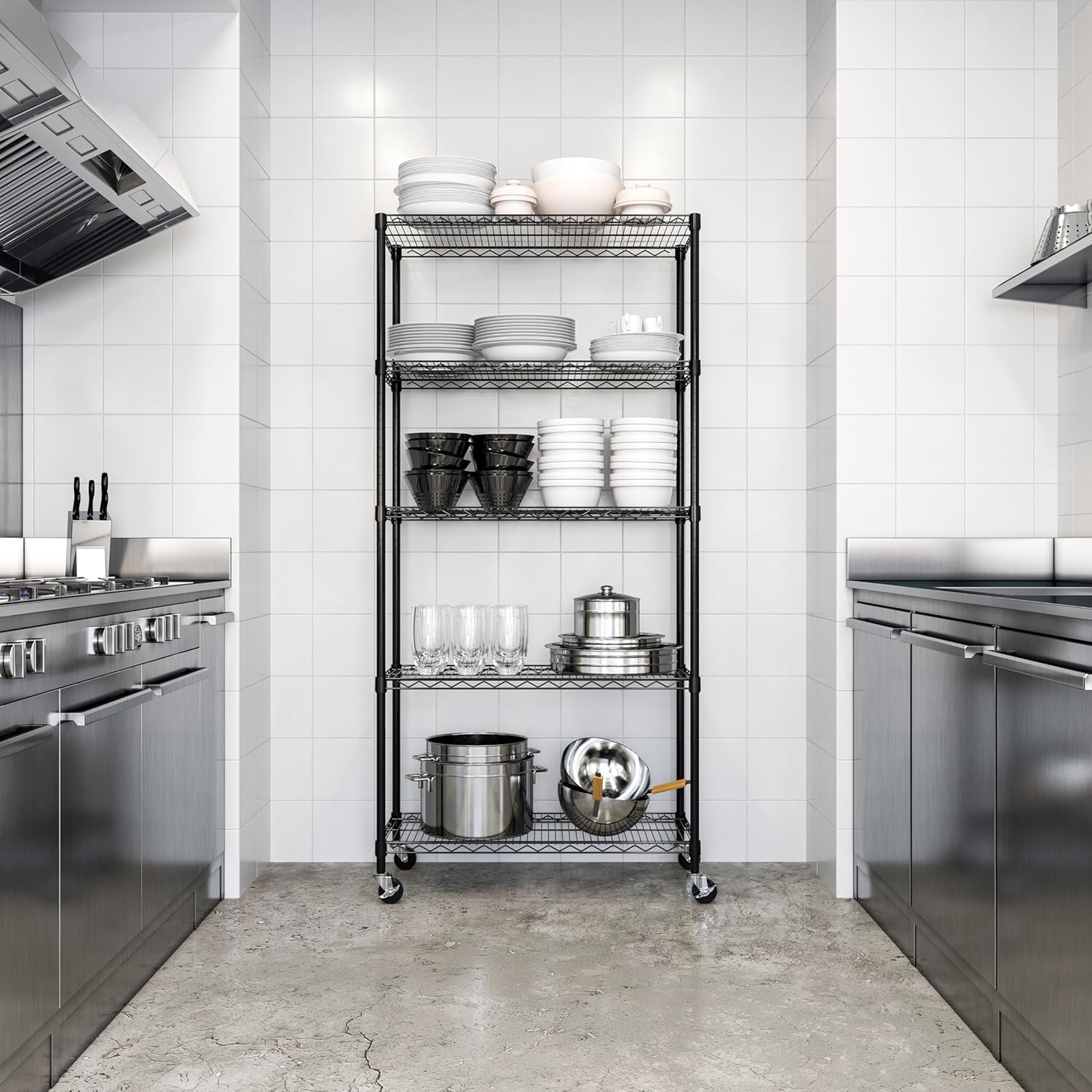 Seville Classics UltraDurable Heavy Duty NSF Solid Steel Wire Rack Storage Unit, Organizer for Garage, Warehouse, Office, Restaurant, Classroom, Kitchen, Black, 5-Tier Shelving, 36" W x 18" D