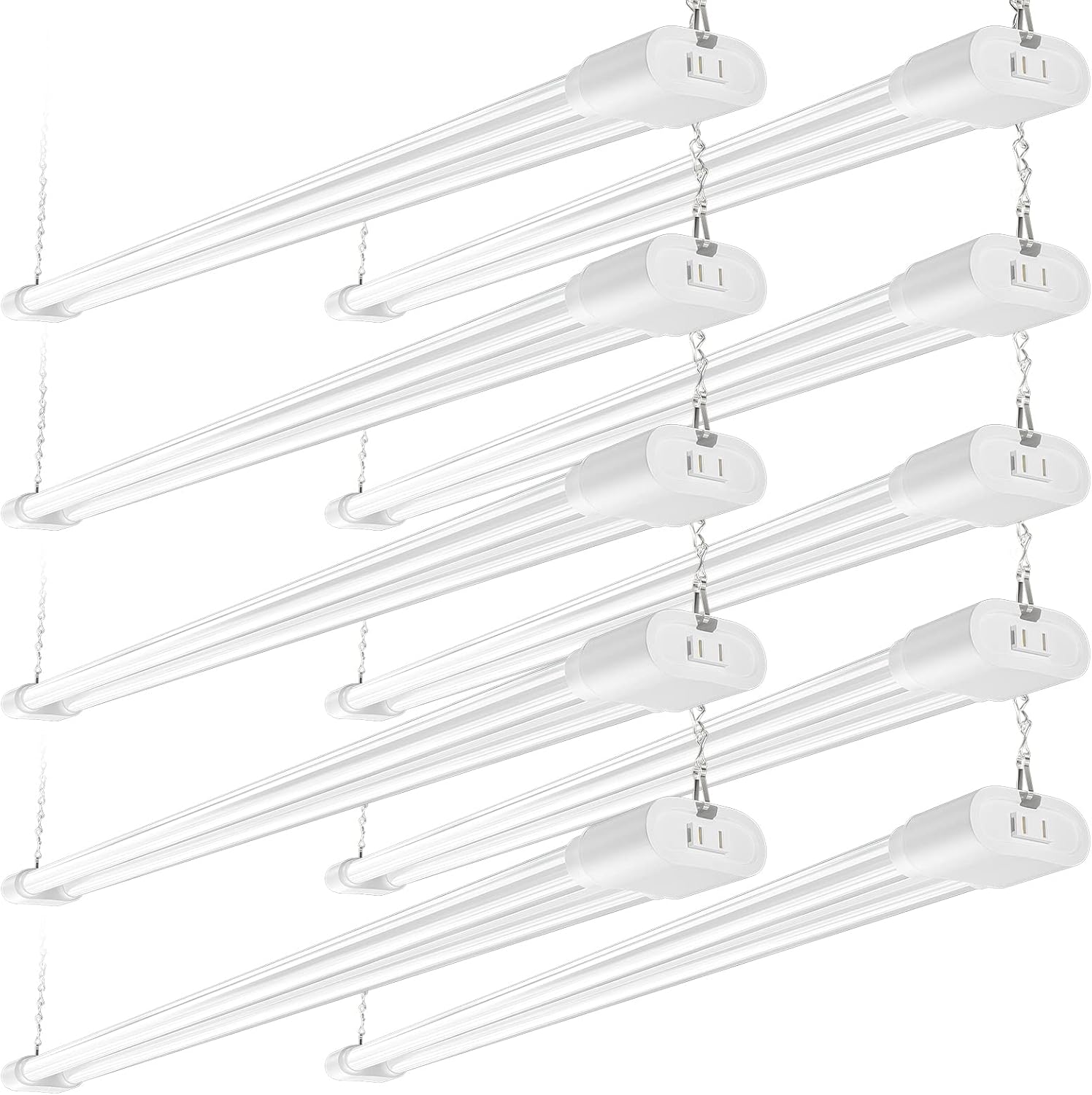 Ensenior 10 Pack Linkable Led Shop Light 4ft for Garage, 4400 High Lumens, 36W Equivalent 280W, 5000K Daylight, 48 Inch Utility shop led lights, Surface or Hanging Mount Fixtures, White, ETL Certified
