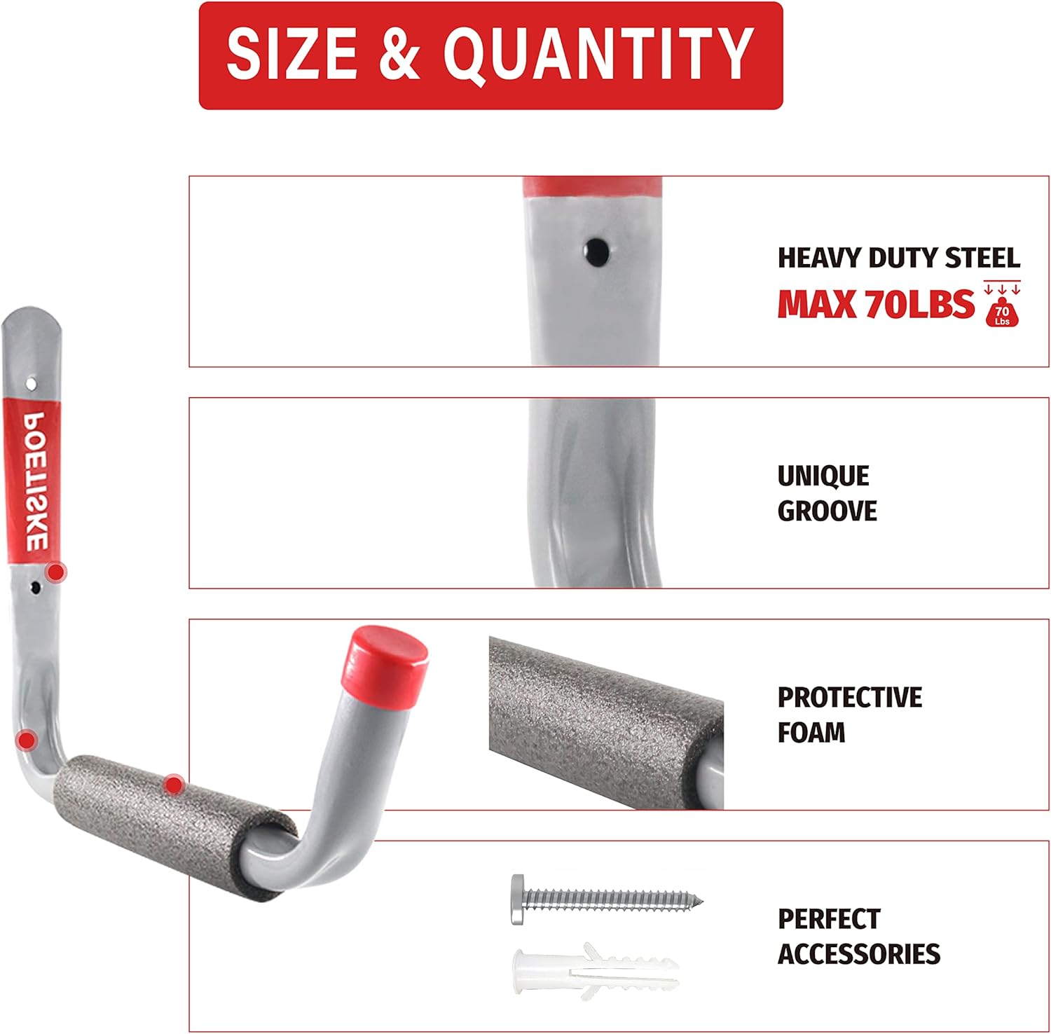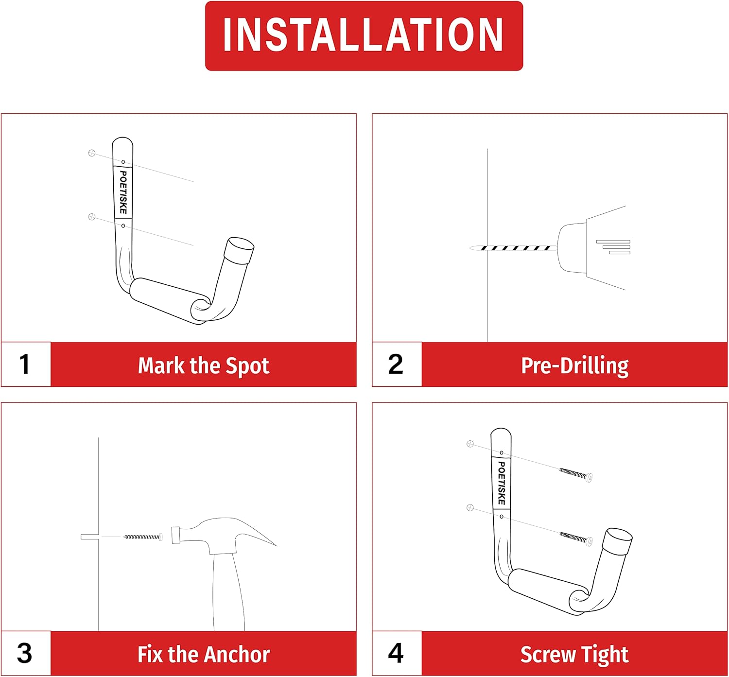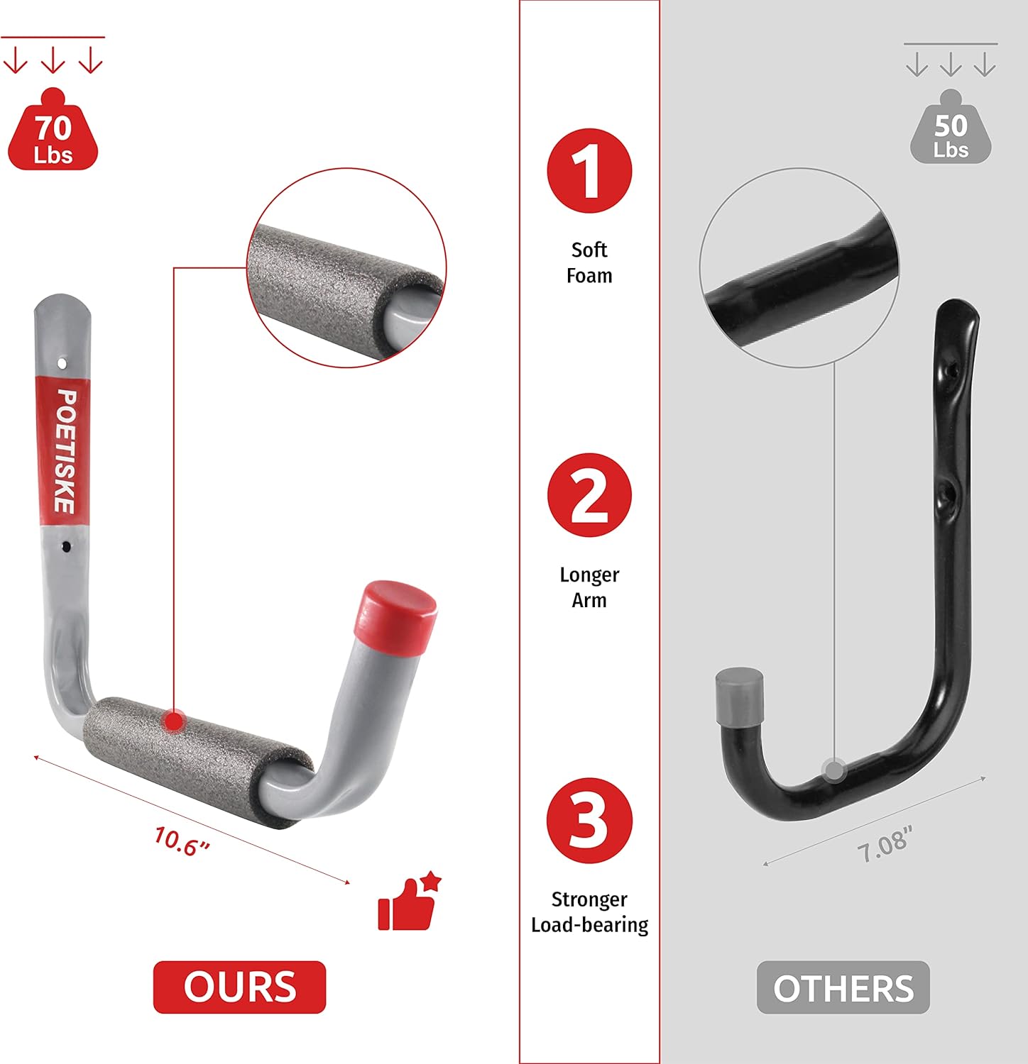 - 【CUSTOMER SERVICE】POETISKE provides quality products and efficient after-sales service. Always committed to do our best to make sure our customers are satisfied about the purchasing of utility jumbo arm garage storage holders. If you receive heavy duty garage storage hangers with any defects, please feel free to contact us, we will provide you with a solution as soon as possible.