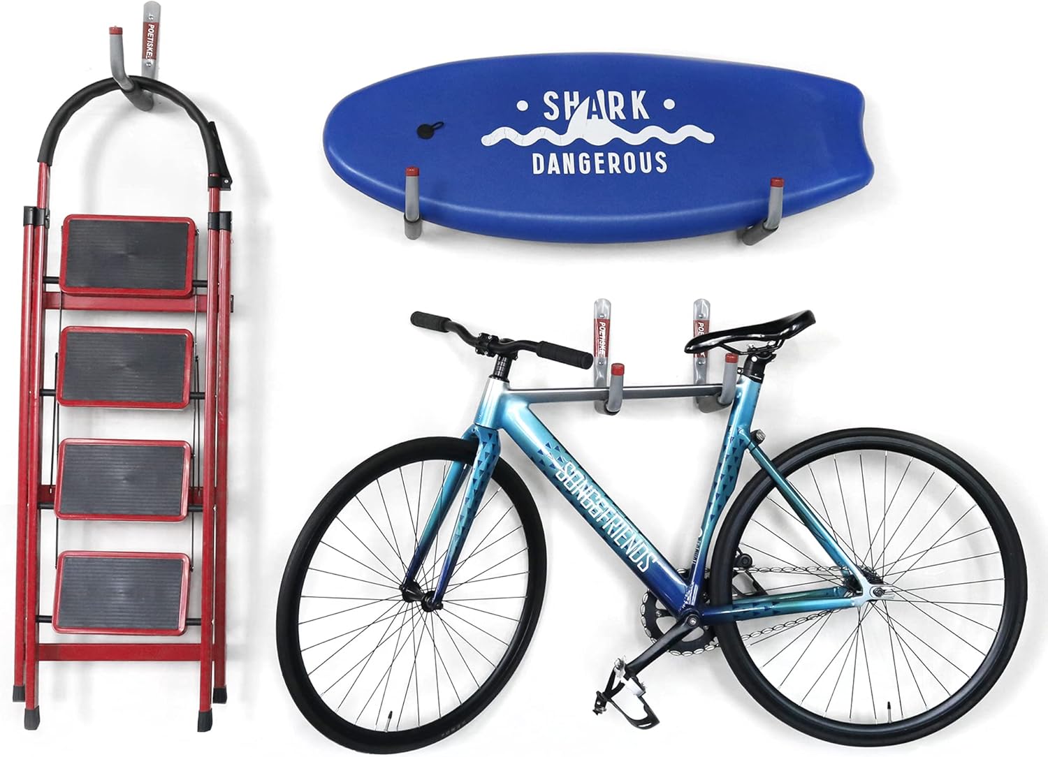 - 【VERSATILE STORAGE OPTIONS】Utility jumbo arm garage storage holders help you to well organize your space, great for organization especially with kayak, skateboard, snowboard, carts, surfboard, lumber, ski, ladders, bicycles, folded chairs, paddles, wire,sports equipment and other bulky items. Each storage holder safely holds 70 pounds or more when properly installed.