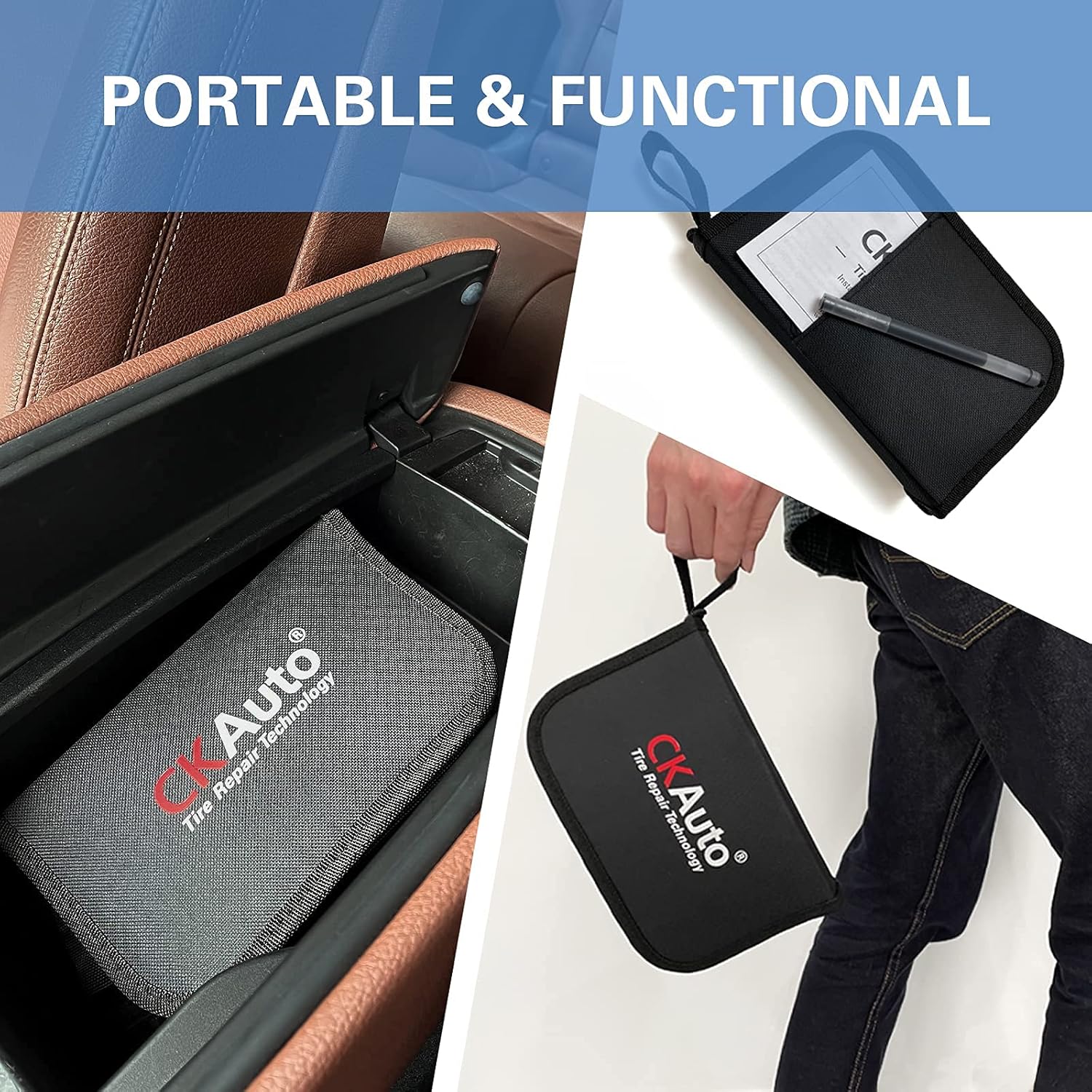 - 【Portable Bag】-- CKAuto Universal Tire Repair Tools can be conveniently organized in a compact carry bag, airtight plastic bag design for tire plugs can maximize the service life of the strips, which is perfect car emergency accessories.