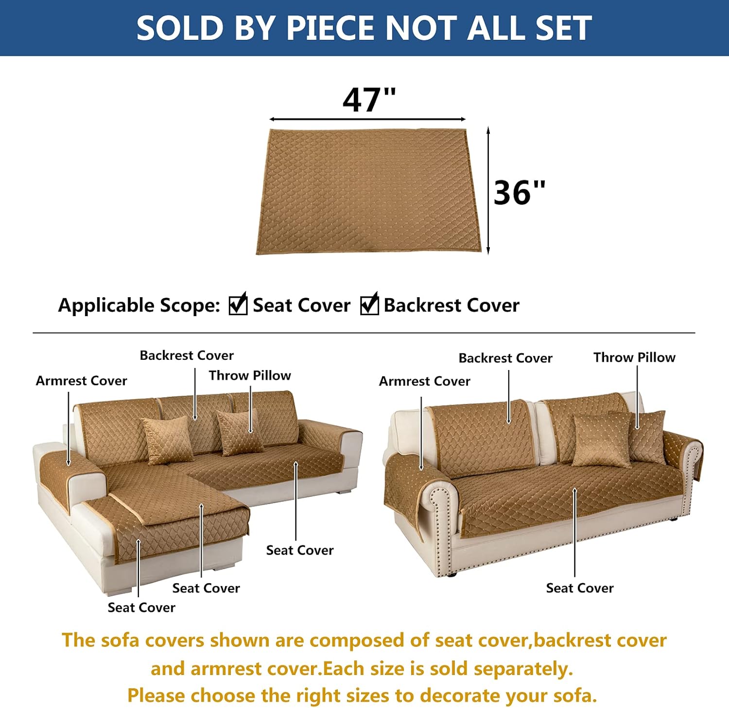 Eismodra Couch Cover,Sectional Couch Covers,Sofa Covers for 3 Cushion Couch,Anti-Slip Sofa Slipcovers for Dogs Cats Kids Loveseat Recliner L Shaped Armrest Backrest,Coffee 36''x47''(Only 1 Piece)
