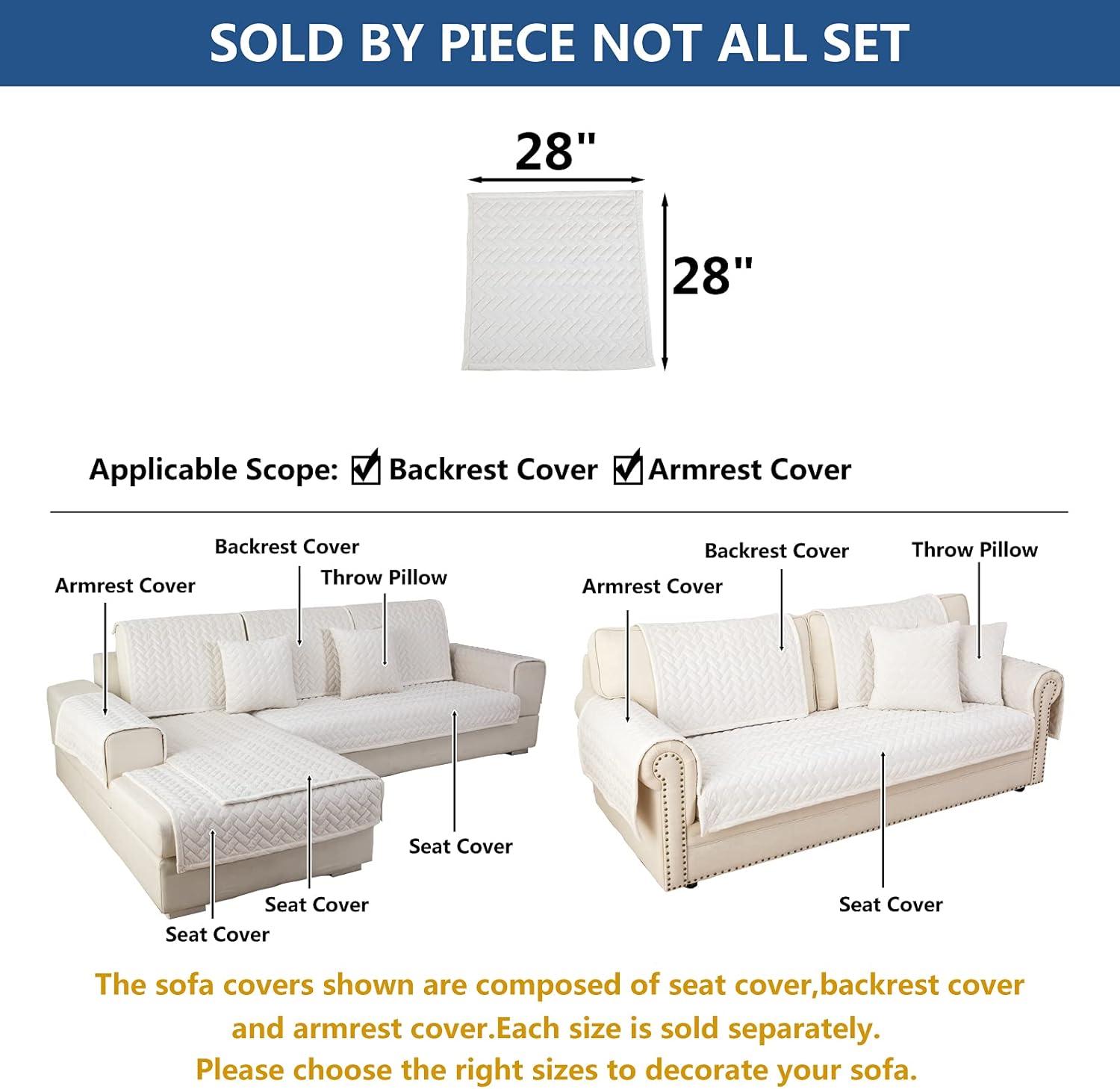 Eismodra Armrest Covers,Couch Cover,Sofa Cover,Backrest Covers,Anti-Slip Armchair Slipcovers for Dogs Cats Pet Loveseat Recliner Leather L Shaped,White 28 x 28 Inches (Only 1 Piece)
