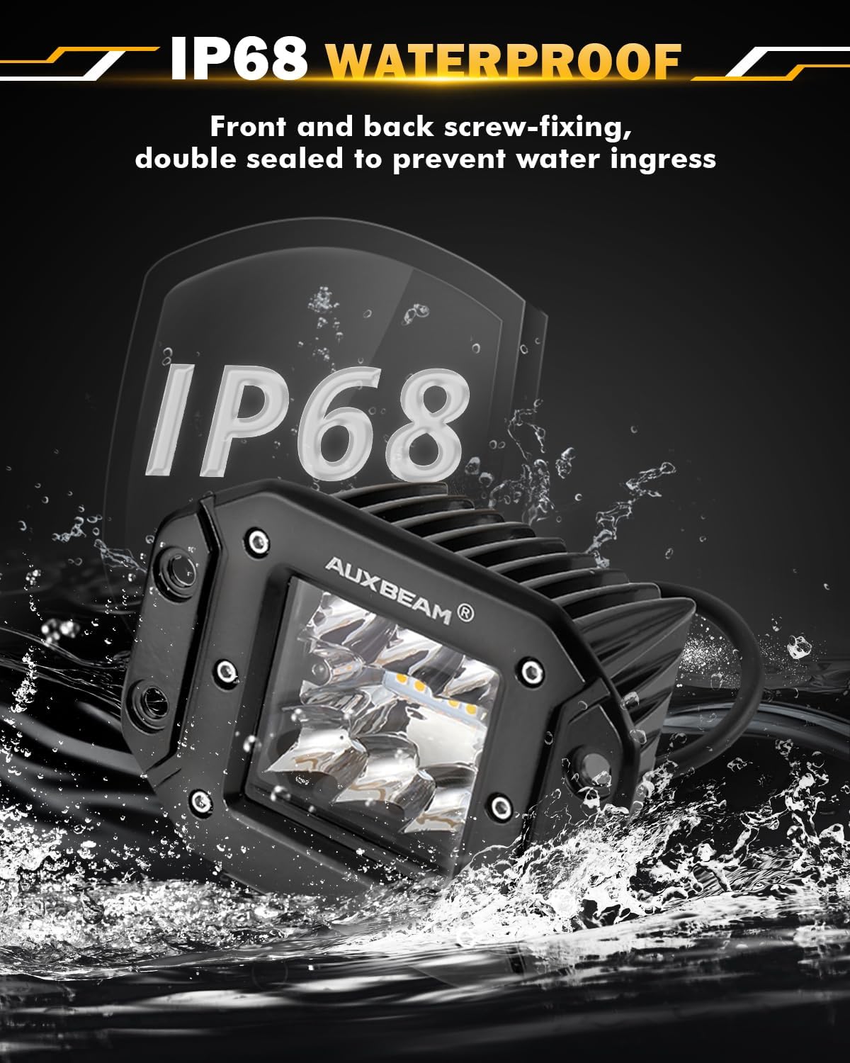 - 【PREMIUM QUALITY】Built in IP68 waterproof adopts upgraded waterproof die-casting aluminum housing and advanced sealing technology to withstand any harsh environments and weather conditions. Also, our lights are with built-in no electromagnetic interference (EMC), resolve the issue of radio interference and flickering