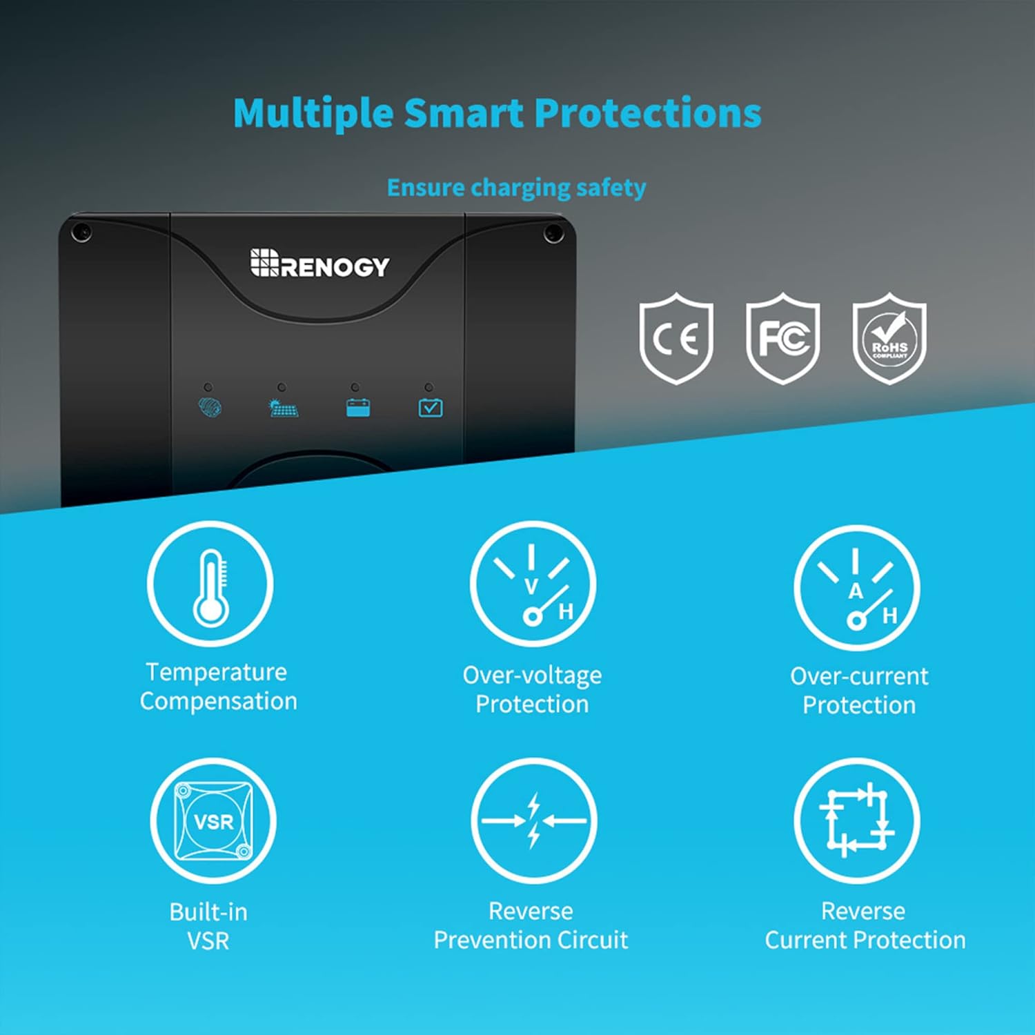 - ๐๐๐๐ ๐๐๐๐ข๐๐ข๐๐ง๐๐ฒ & ๐-๐๐ญ๐๐ ๐ Smart Charging: With Built-in Maximum Power Point Tracking (MPPT), Renogy DC-DC On-Board Battery Charger will charge your service batteries with maximized solar power, providing 3-phase charging (๐๐ฎ๐ฅ๐ค, ๐๐จ๐จ๐ฌ๐ญ ๐๐ง๐ ๐ ๐ฅ๐จ๐๐ญ) to regulate the whole charging and ensure the batteries will be accurately charged at the correct voltage levels to ๐๐๐%