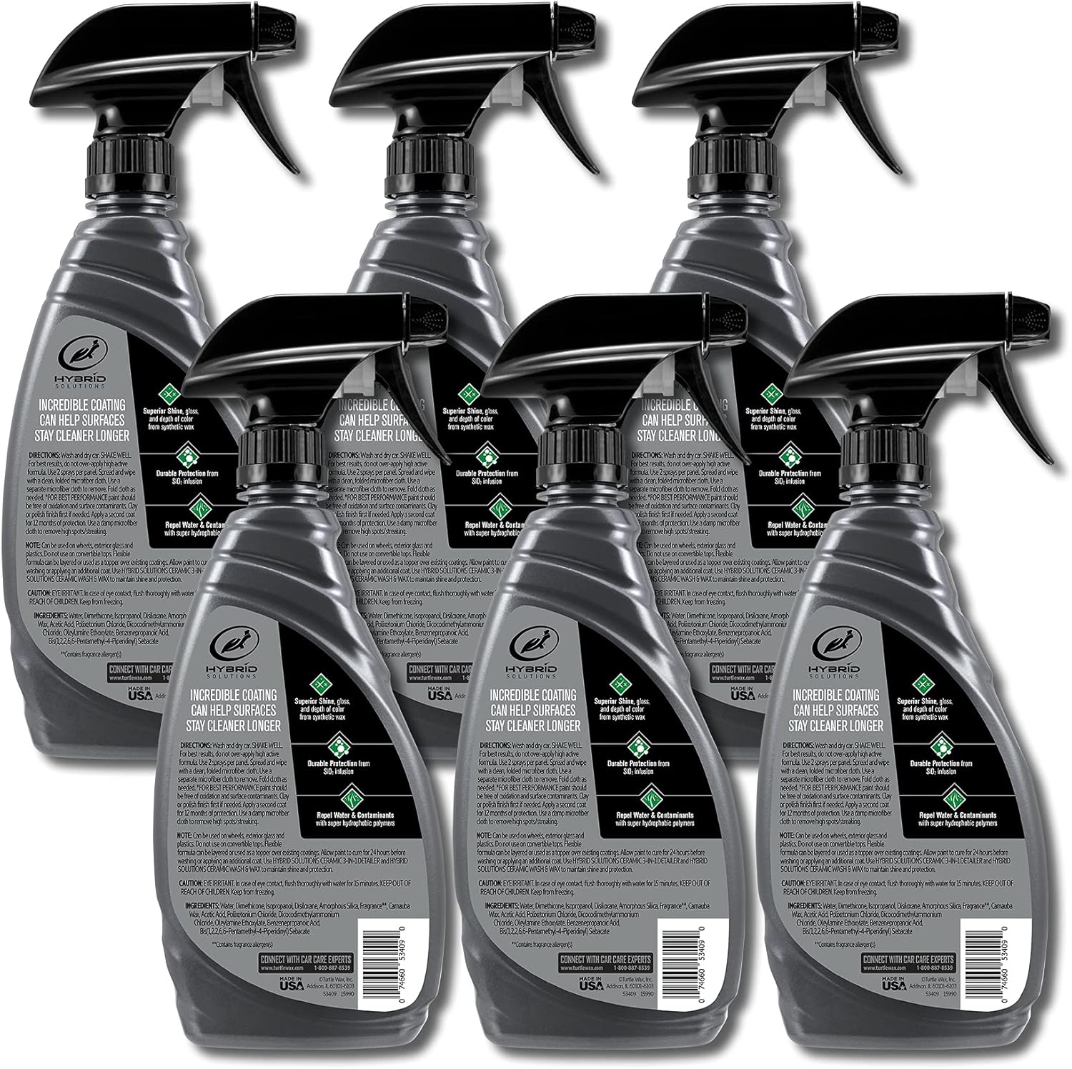 Turtle Wax 53409-6PK Hybrid Solutions Ceramic Spray Coating, Incredible Shine and Protection for Car Paint, Extreme Water Beading, Safe for Cars, Trucks, Motorcycles, RV's and More, 16 oz. (Pack of 6)