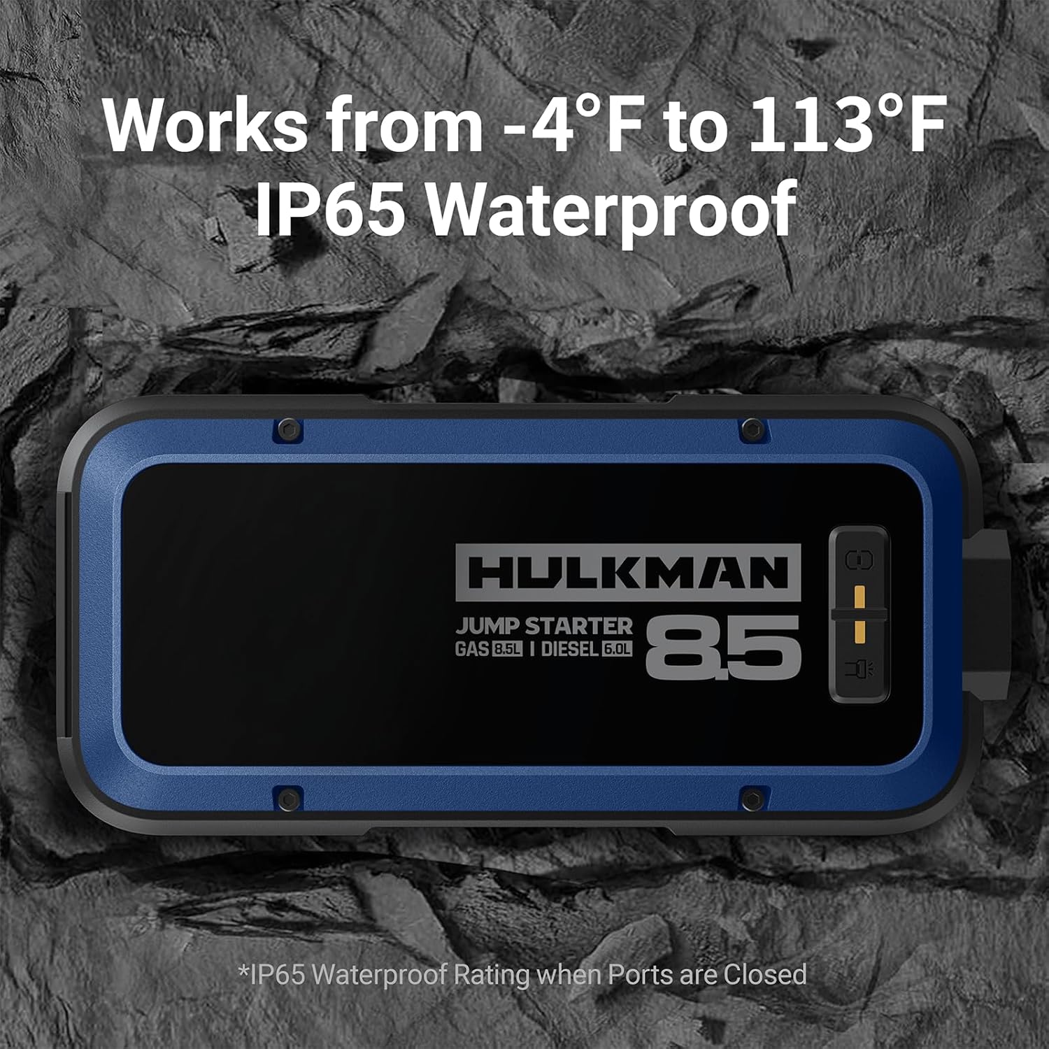Hulkman Alpha85,Cobalt Blue, 2000A 74Wh Smart Jump Starter, 12V Portable Car Battery Booster with 3.3" Display, USB-C Power Pack,Includes 65W Wall Charger,Jumper Cables for up to 8.5L Gas/6.0L Diesel
