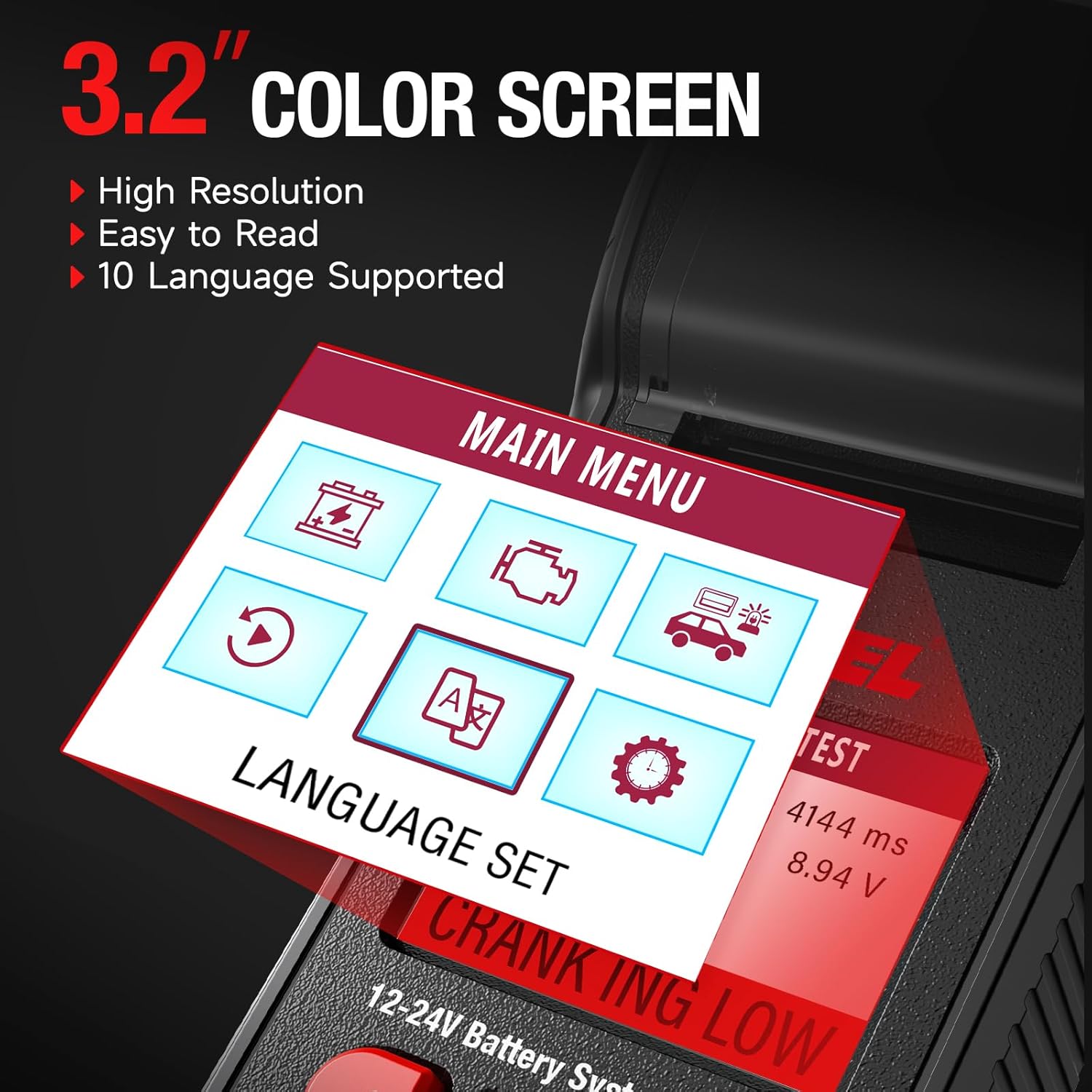 - Advanced Tech - Featuring a 3.2" color backlit LCD display, the BST600 offers visual data that's easy to read. Encased in acid-resistant ABS plastic for durability and anti-skid properties, it comes with a silicone break-proof cover for the cable, Soft rubber buttons add a comfortable touch while ensuring they are wear-resistant. it also tests battery temperature against optimal ranges, preventing overheating or cold-related issues and thereby boosting performance, safety, and longevity.