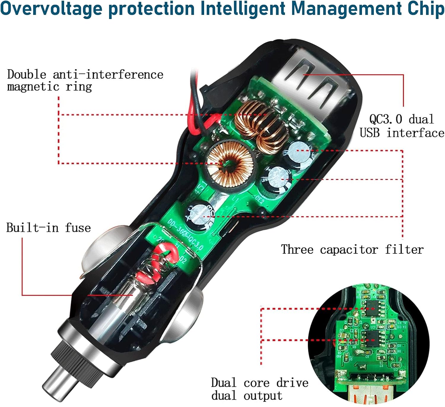 - 【High quality】:Good design, advanced technology, premium materials the soft blue LED light indicator will help you to locate the car adapter easily, and it also will provide convenience for you to pull and plug USB power cables in dim light