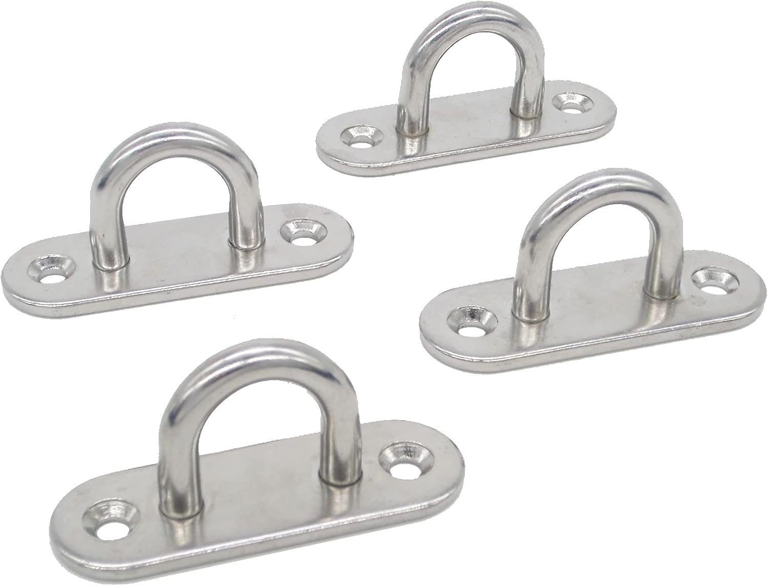 Stainless Steel Ceiling Hooks & Wall Hangers - Heavy Duty M6 Screw Mount, Rust-Proof Anchor Straps for Garage, Outdoor, Storage (4-Pack)