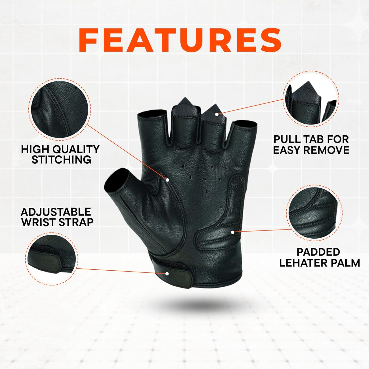 - Premium Leather: Daniel Smart Fingerless Motorcycle Gloves are made of excellent Goatskin leather that provides natural protection and will not tear or crack when exposed to conditions like sunlight, heat, or moisture.