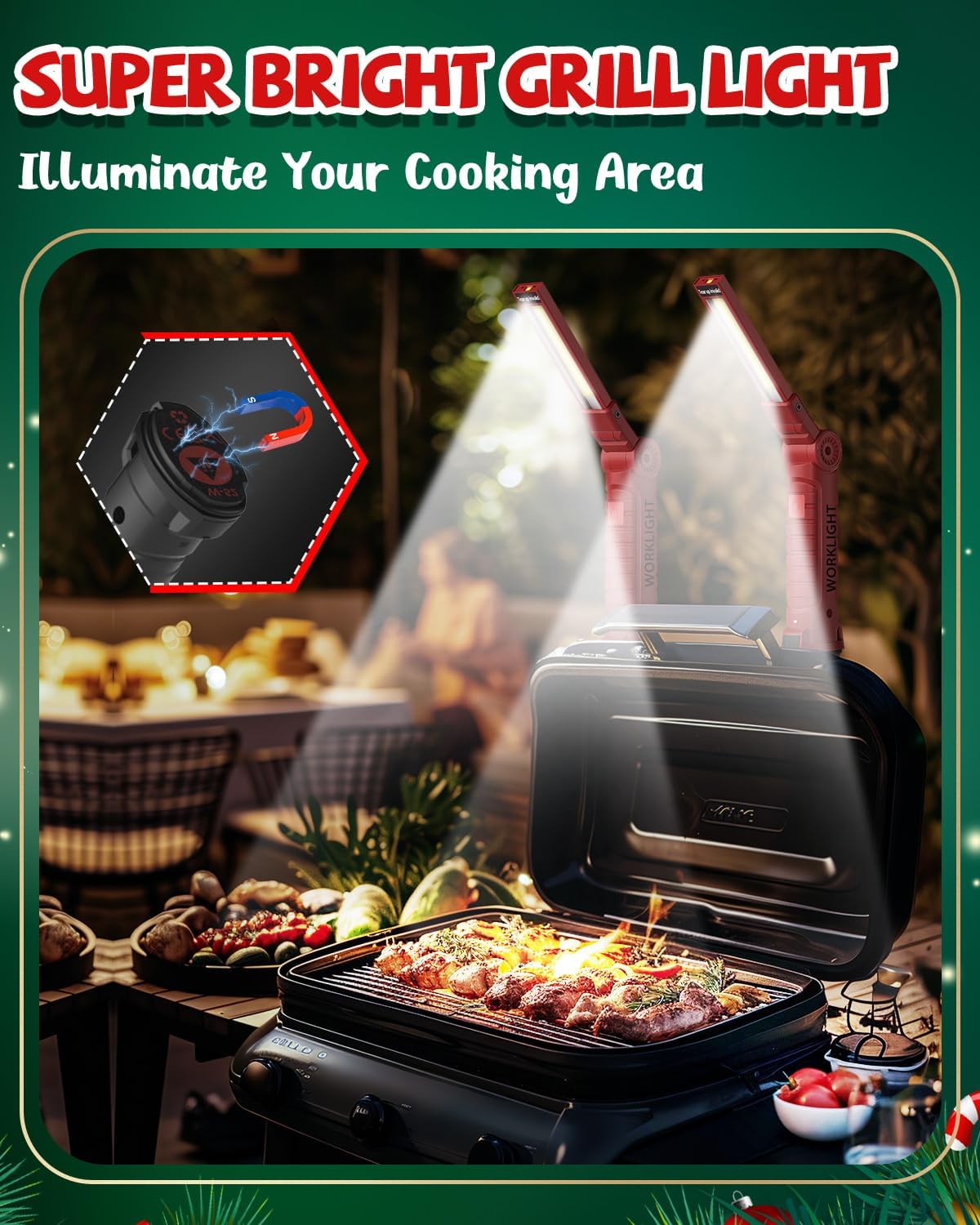 - 360 Degree Rotation, Magnet Base & Hook: 360 degree rotate provide multi-angle illumination, magnet base and hook make your hand free to do other things in the night. It can be used for BBQ, camping, reading, car repair and any other things you would want to do at night