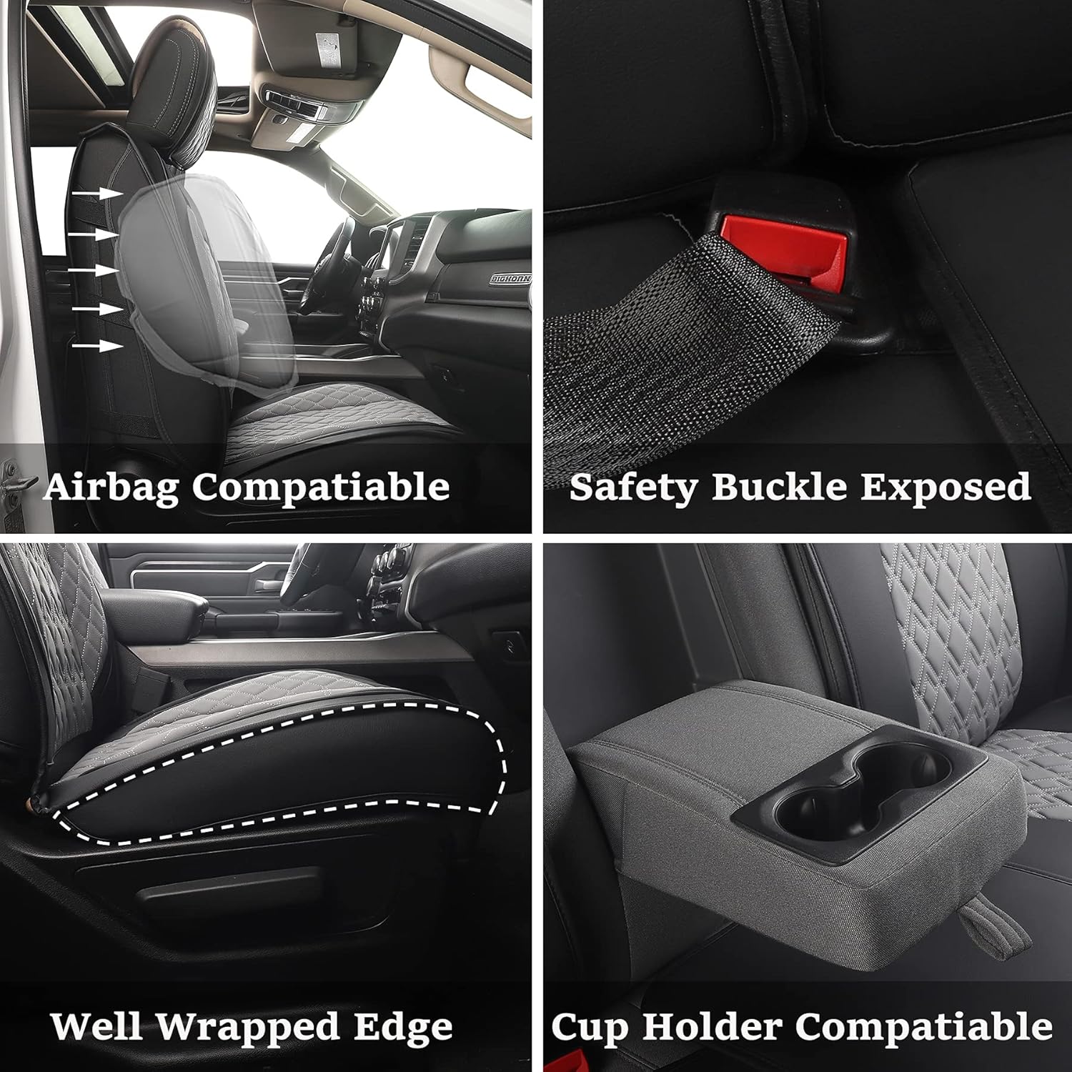 - 💎Designed for Dodge Ram Pick up Trucks - This car seat cover is designed for ram 2009-2025 1500/2500/3500 Pick-up Truck,Classic Cab,Crew Cab,Regular Cab,Quad Cab,Mega Cab.It is suitable for various Dodge RAM trims,for example,Big Horn,Laramie,Limited,Lone Star,Lonhorn,Rebel,Tradesman,SLT,Sport and so on.
