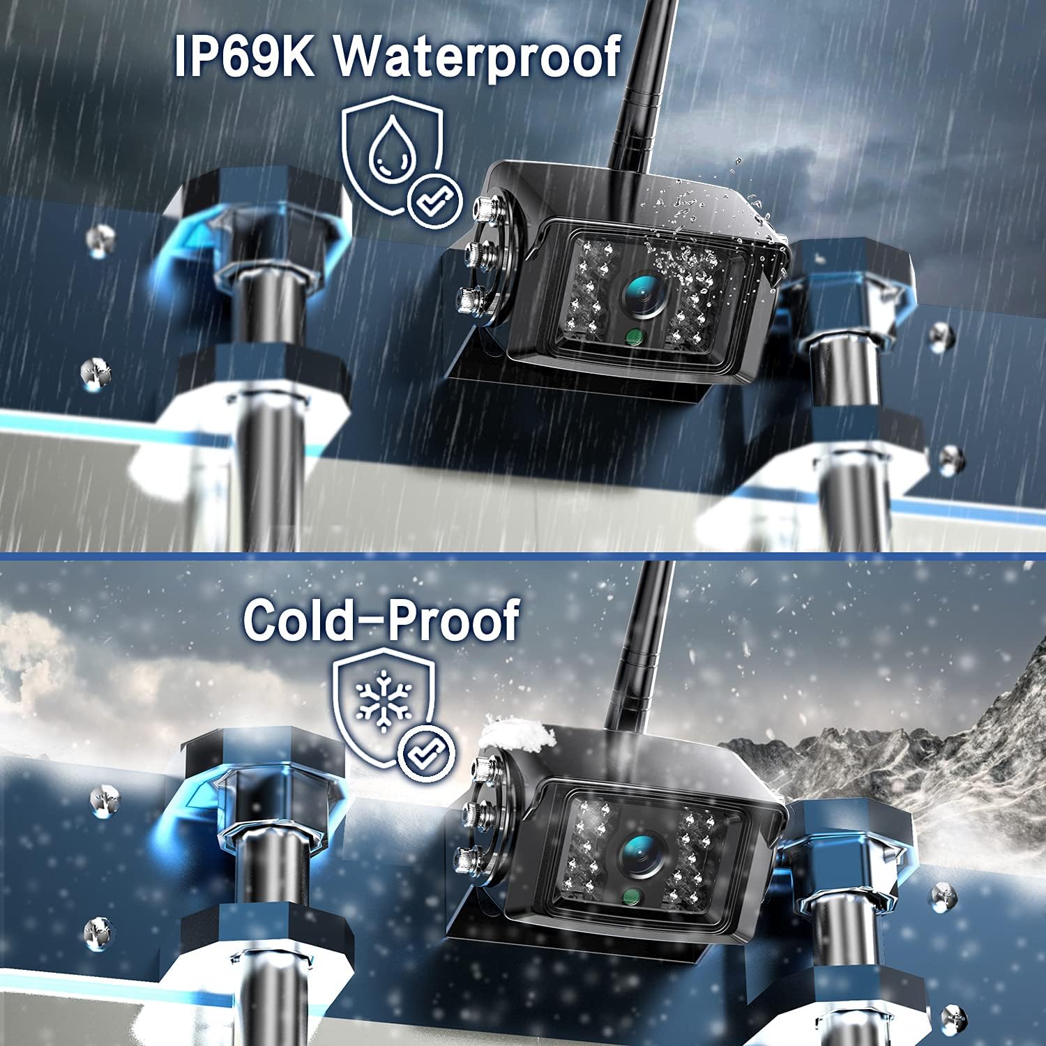 - 【IP69 Waterproof & Loop Record】Whether you're driving on a rainy-day, snowy-day, or foggy-day, ZEROXCLUB IP69K Waterproof Backup Camera can handle it. Buit-in loop record function, the wireless rear view camera will automatically overwrite the oldest recorded video when the memory card is full, protecting your safety and security while driving,backuping up and stationary.