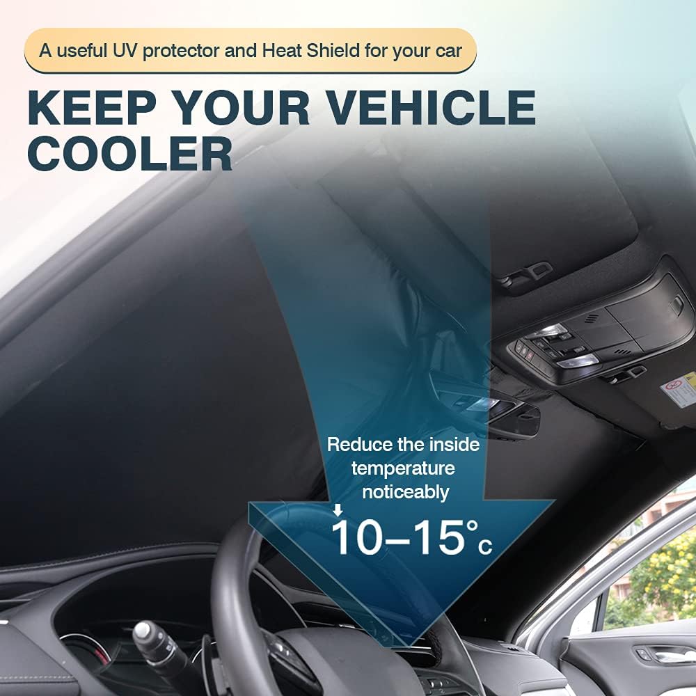- Highly Reflective Protection -- The Sorento windshield sun shade will provide maximum protection for your car interior by blocking 99% of UV rays and sunlight. Not only protect the dashboard from fading and cracking, but also protect people skin by blocking the harmful UVA. Offering you a cool environment by lower the temperature by 50-59ยฐF.