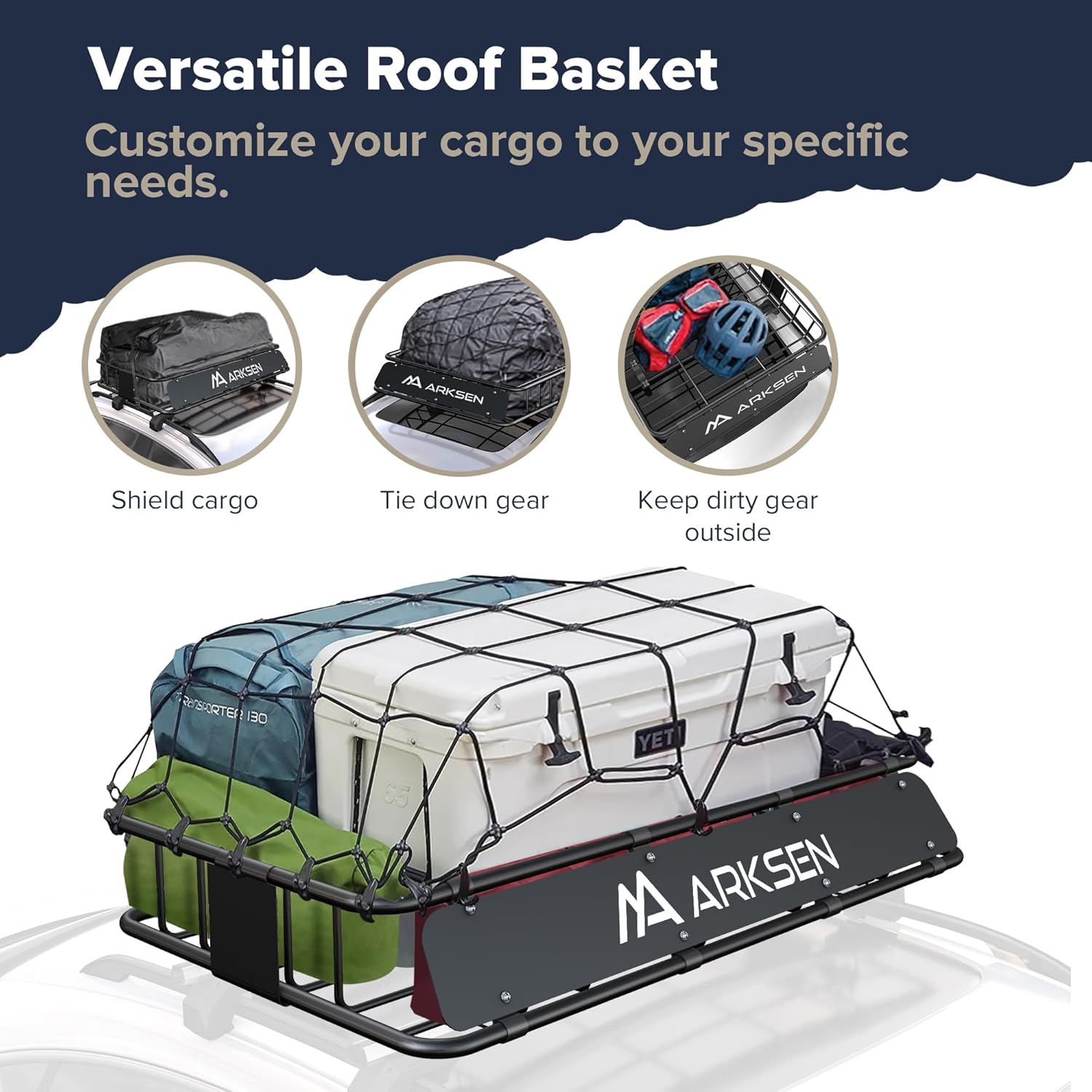 ARKSEN 30 x 50 x 6 Inch Universal Extra Wide 150LB Heavy Duty Roof Rack Cargo with 500D PVC Waterproof Cargo Bag, Car Top Luggage Holder Carrier Basket for SUV, Truck, & Car Steel Construction