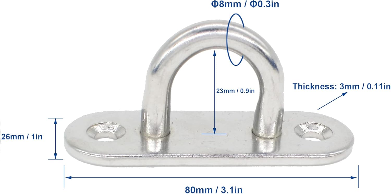 Stainless Steel Ceiling Hooks & Wall Hangers - Heavy Duty M8 Screw Mount, Rust-Proof Anchor Straps for Garage, Outdoor, Storage (4-Pack)