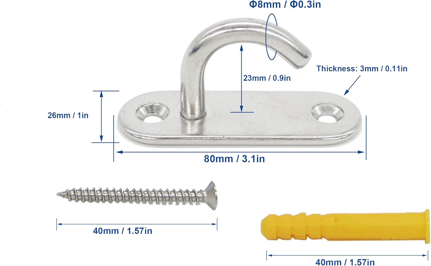 - ✅ Compact & Space-Saving – Sleek design (80x26x34mm) with 3mm reinforced base plate and 8mm thick wire. No bulky hardware!