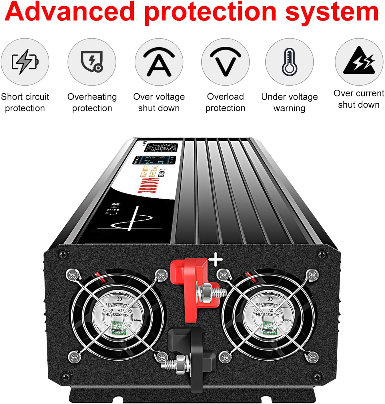 - 【XIJIA Power Inverter】Provides clean pure sine wave 3000W DC 12V to AC 120V continuous power.Much better than Mod(modified) sine wave. True pure sine wave inverter can provide high quality and stable output power, Less wear to protect your AC equipment more stable.It's recommended by most cordless tool manufacturer that a pure sine wave inverter is used to ensure long battery life.
