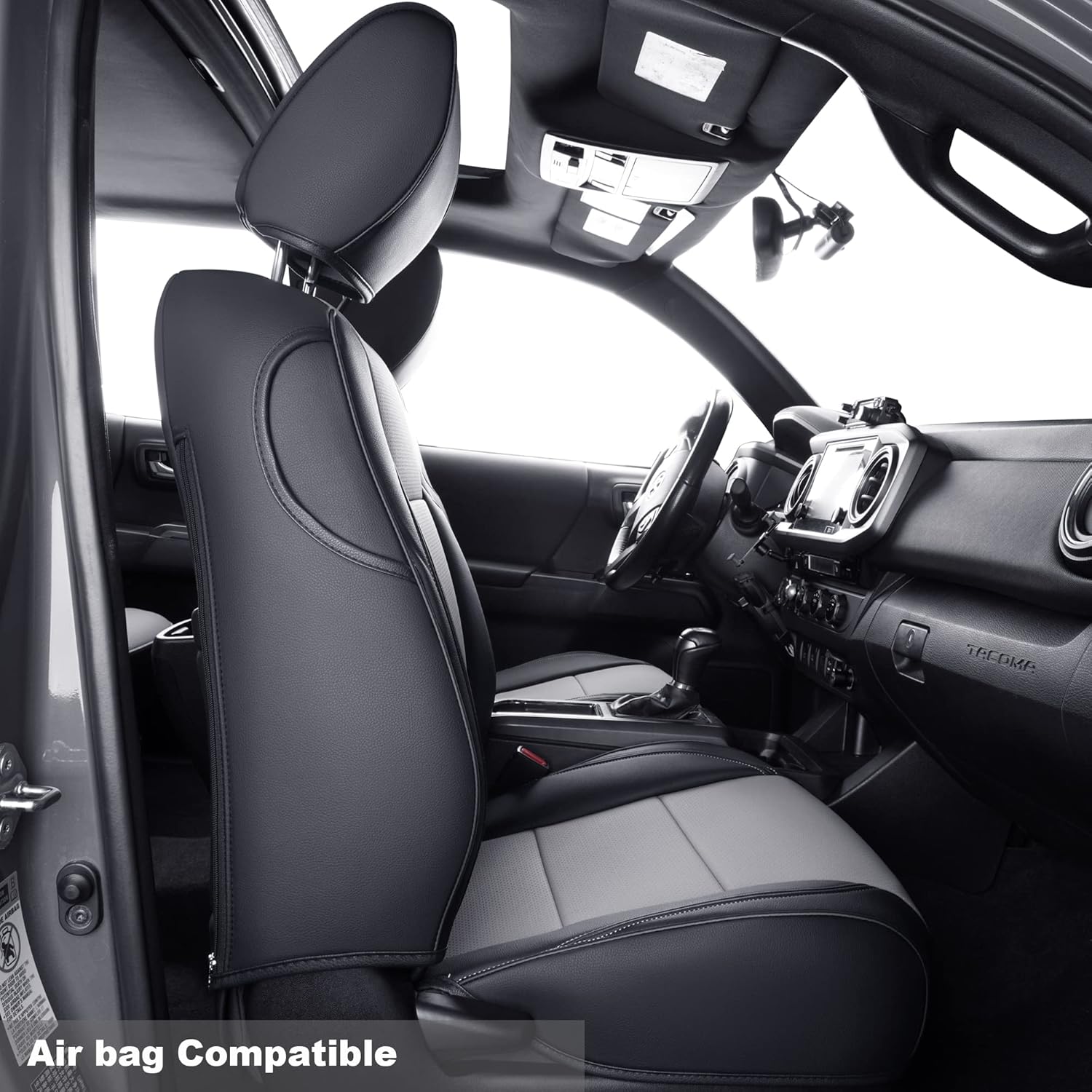 LUCKYMAN CLUB Tacoma Custom Fit Seat Covers for 2016-2023 Tacoma Crew Cab with Faux Leather (Black & Gray)