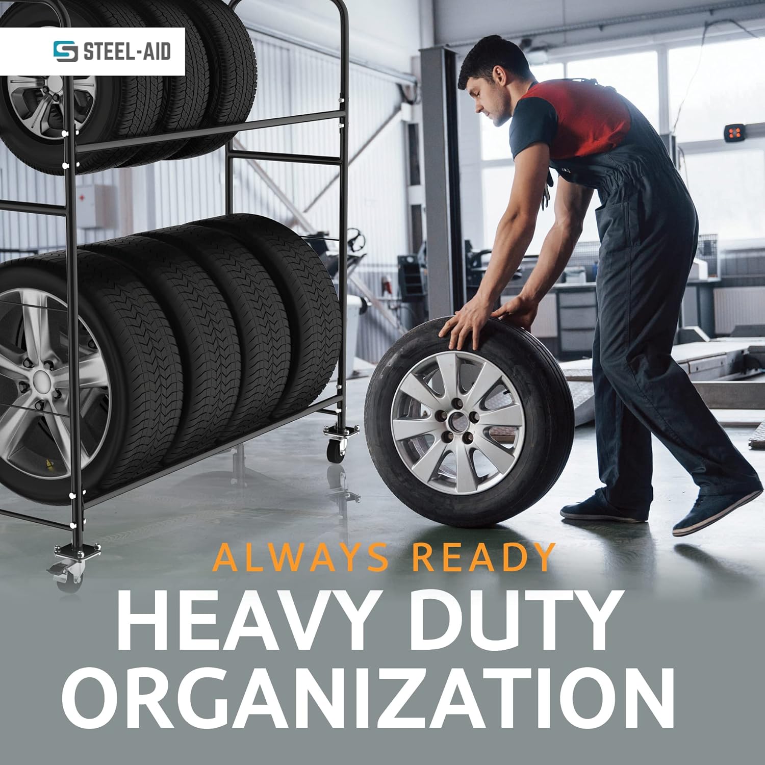 STEELAID Tire Storage Rack - Rolling Rack for Garage - Indoor/Outdoor Shelves 60 inch Organizer