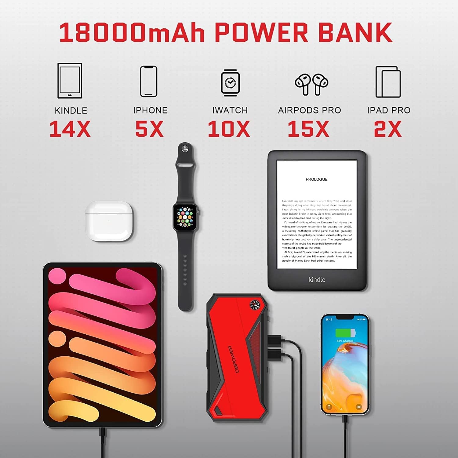 - ăOVER 10 MILLION UNITS SOLDă: DBPOWER has over 7 years experience in this field, we provide safe and reliable product, 18 months of hassle-free service and lifetime technical support. Contact us anytime with any questions. The package include one Jump Starter, one intelligent jumper clamps, Type-C USB charging cable, user guide, jump starter carry case and user manual.