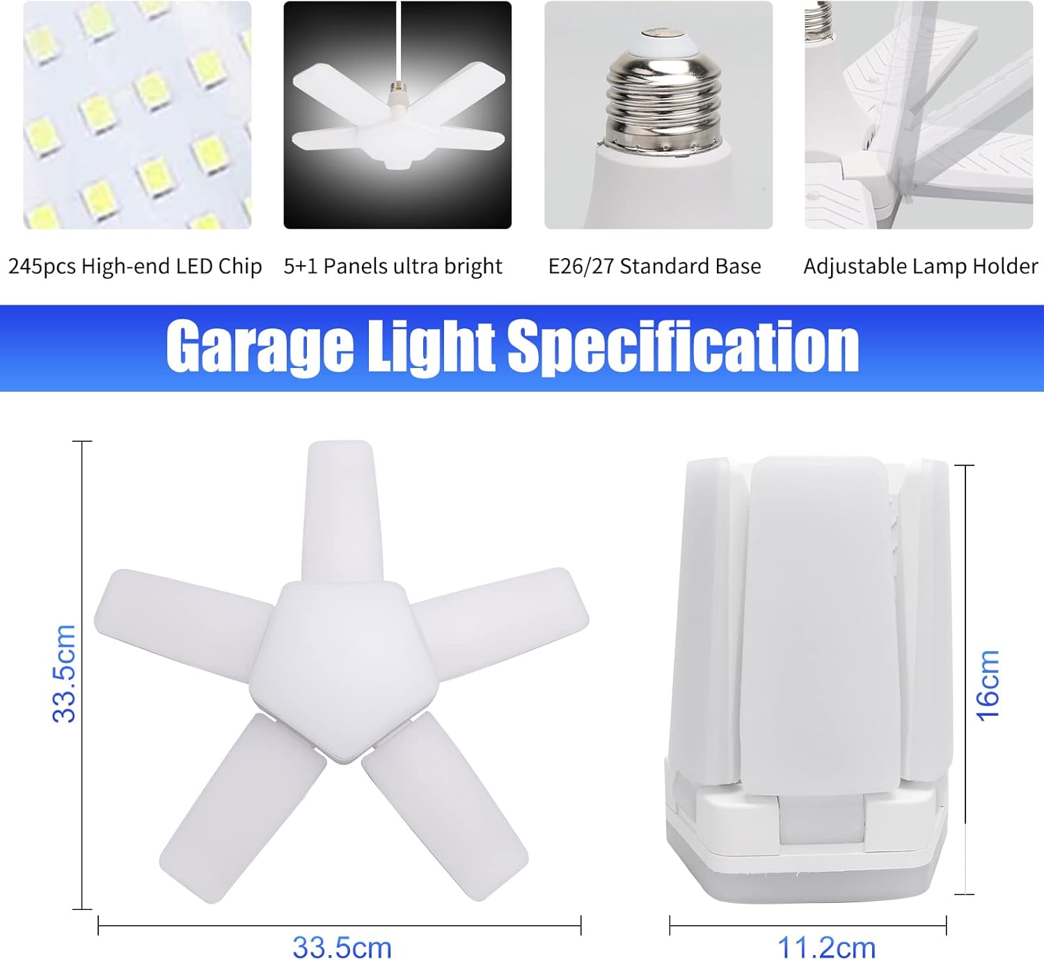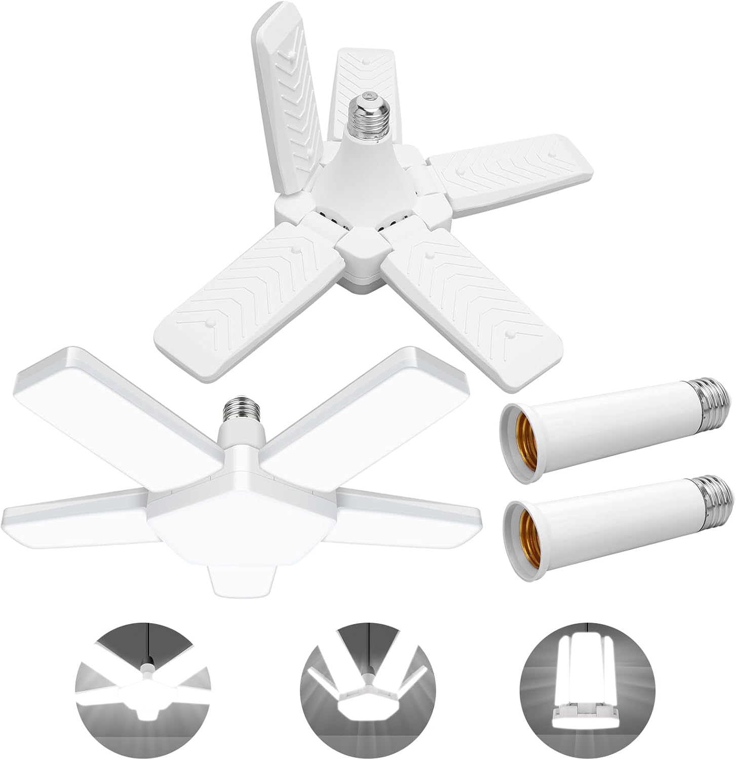 - Easy To Install:The led lights for garage ceiling with E26/E27 standard base. You can install the deformable garage led light easily just like screwing a traditional light bulb, no need for extra tools, no more wiring, and professional electricians. Note: Please turn off the power before installation